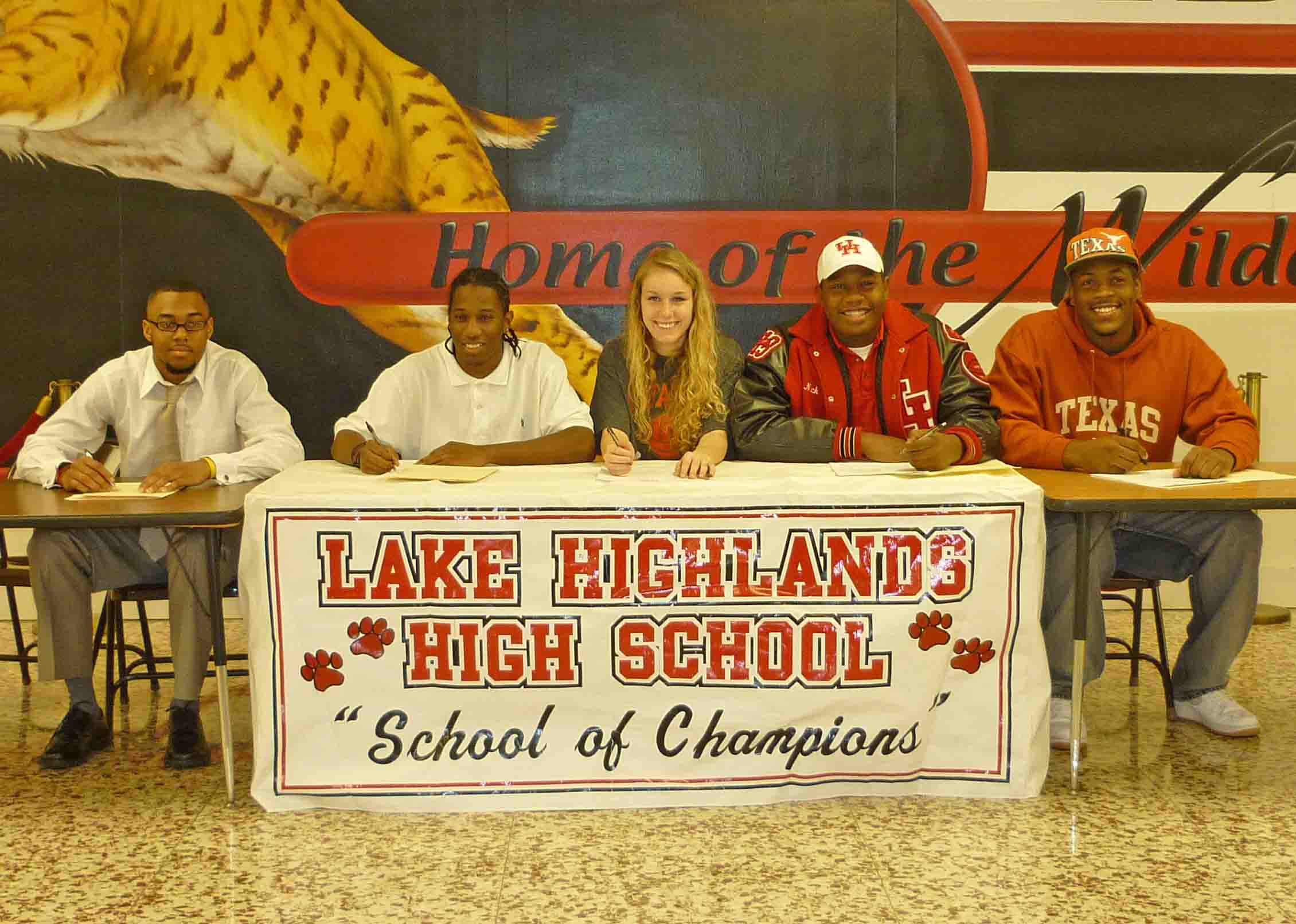 Coaches, parents and classmates gathered at Lake Highlands High School today to watch Wildcat athletes sign commitment paperwork for their colleges of choice. February 6 is National Signing Day, and LHHS had 5 athletes accepting scholarships to play college ball.