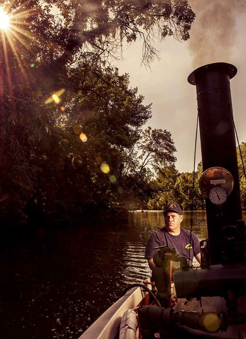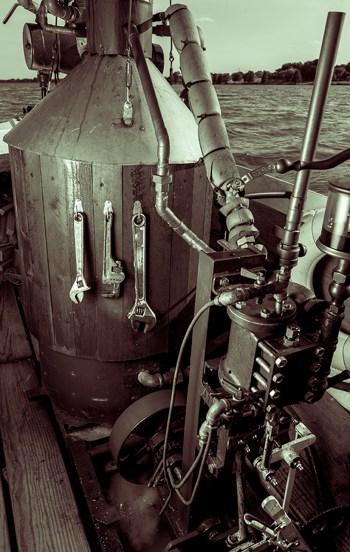 A passenger on Linda Lue, Dean’s homemade boat, almost starts to see the steam engine as a living thing. She warms up gradually until, like a distance runner, her heart thumps steady and strong. She labors, rumbles, burns, exhales forcefully, sweats profusely and drinks the water Smith systematically provides.