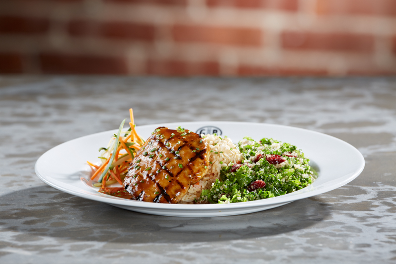 Legendary garlic fries, lobster and shrimp mac ‘n cheese, beer-battered fish and chips, Woodford Reserve® bourbon entrées (a choice of wild Alaskan salmon, chicken breast or jumbo Gulf shrimp served with brown rice pilaf, quinoa and kale), Gruyère pancetta pizza, farmhouse frisée salad, and a chocolate budino cake.