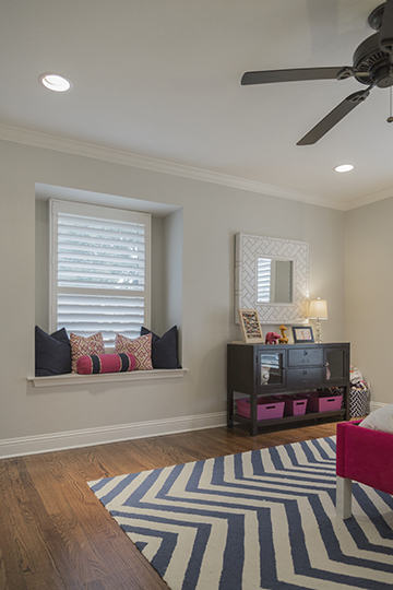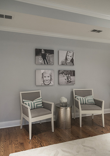Each aspect of the reinvented Kellogg home — from the functional office spaces and efficient, airy kitchen to the electronics-packed game room and girly bedrooms — is tailored to the family’s unique lifestyle, which includes work (Jenny is a Nathan Grace Realtor and tackles many of the accounting and administration duties for Derek’s company), entertaining guests and abundant family time.