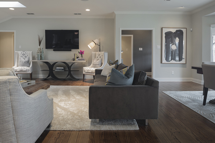 The Kelloggs knocked down walls in the living room, creating wide-open spaces, and the previous homeowners had kept the hardwood floors in beautiful shape. Photo by Jeanine Michna-Bales