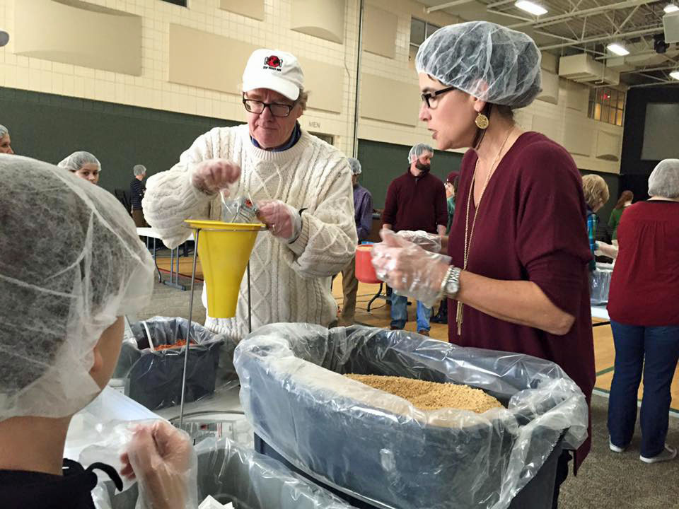 Lake Highlands United Methodist Church volunteers prepared meals for more than 15,000 people Sunday as part of their “Stop Hunger Now” mission event. The food packages, part of a larger school feeding program, will be shipped to hungry children and families in 65 countries around the world.