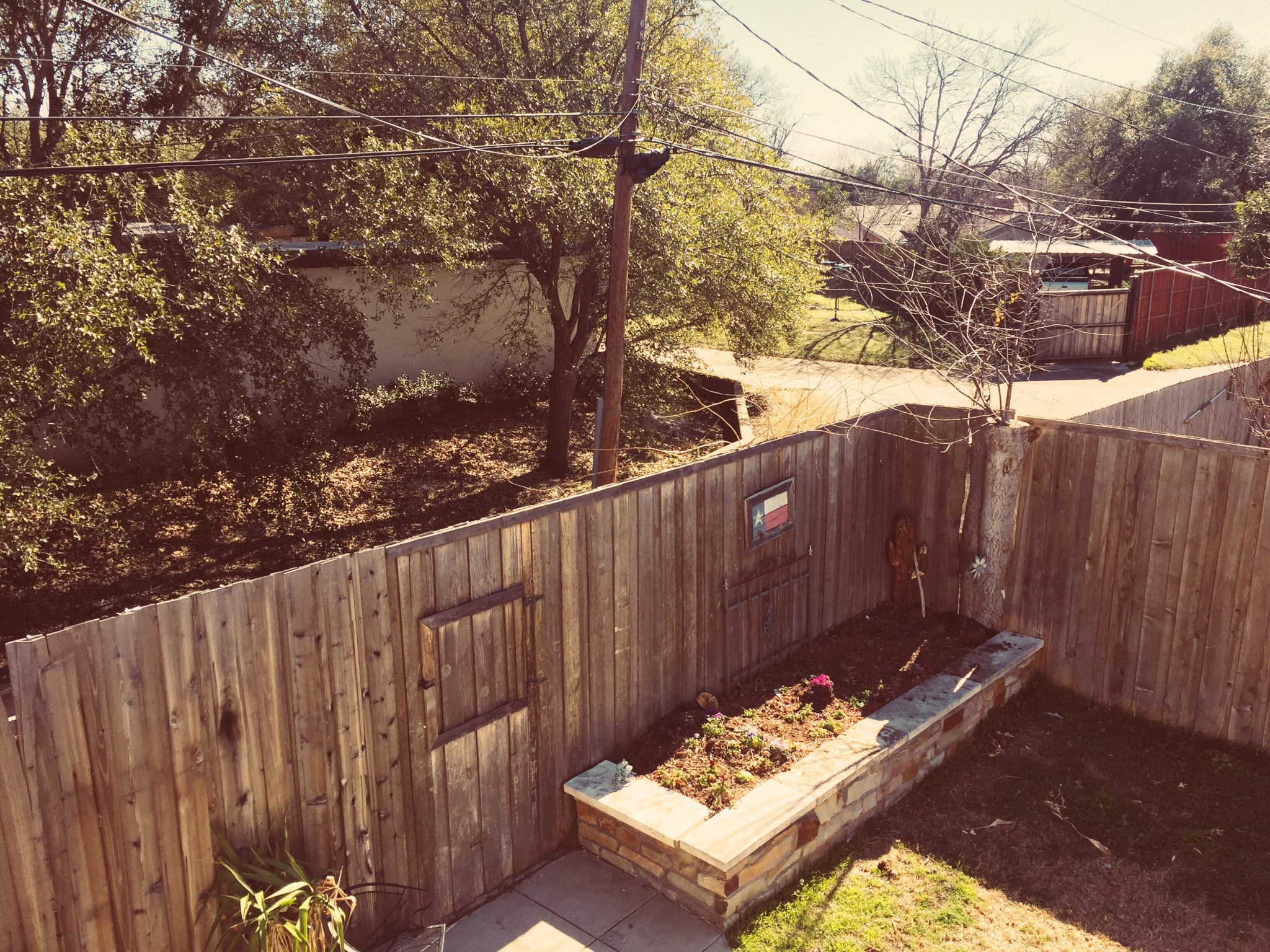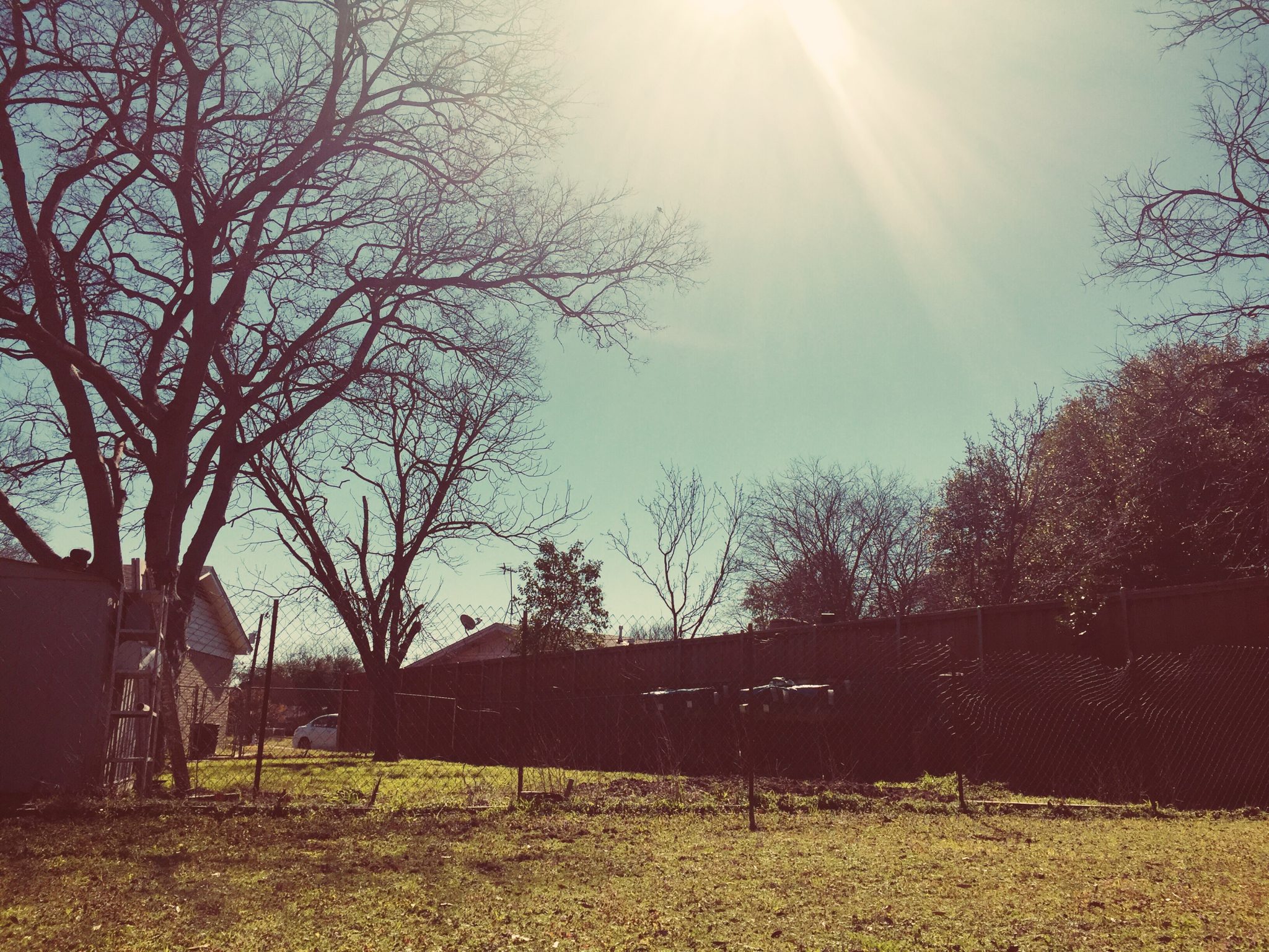 From the porch of the back house, we were able to see the backyard of the neighbor who supposedly owns the hogs. We couldn’t tell if the pigs were in the backyard or not.