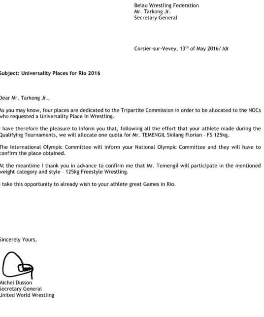 Letter of Olympic acceptance. (Courtesy Temengil family)