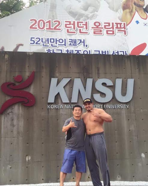 Florian "Ski" poses with his Korean wrestling coach before heading to Rio for the Olympic Games. Courtesy family