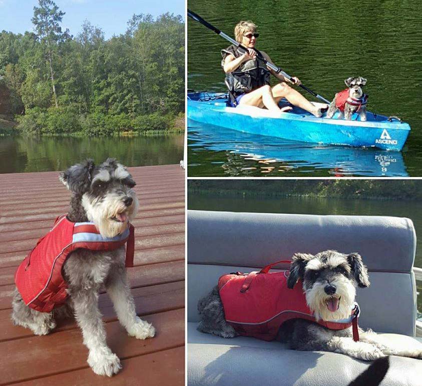 Gus is always ready for the lake in his life vest from Hollywood Feed. Photo by Richard Goodis on Instagram, Hollywood Feed’s Facebook page.