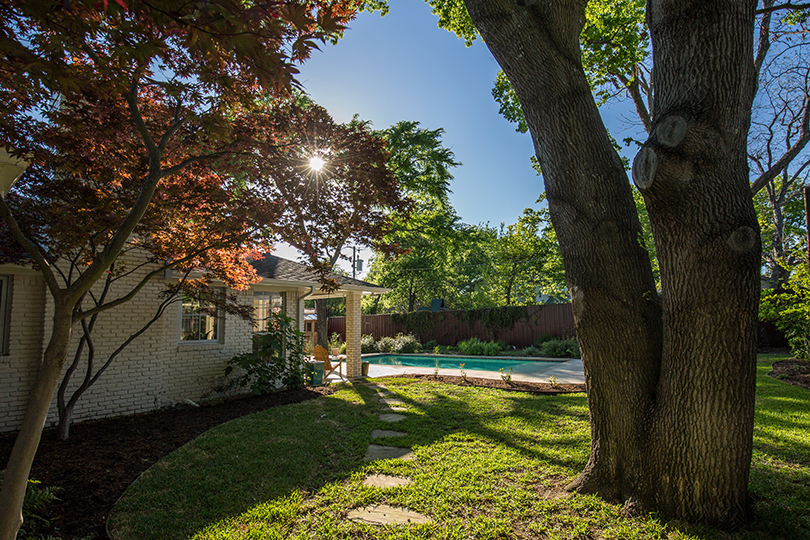 Back in the 1980s, the property belonged to noted Master Gardener Delores Cullivan, the White Rock Lake resident behind Artistic Gardenscapes, which designs drool-worthy residential landscapes that range from English rose to drought-tolerant. At her own home, she carved out deliberate paths for the plants to follow, building architectural beauty from flora and fauna. According to neighborhood lore, Cullivan sold the property only after the new owner agreed to allow her to keep tending the garden she so lovingly designed for herself.