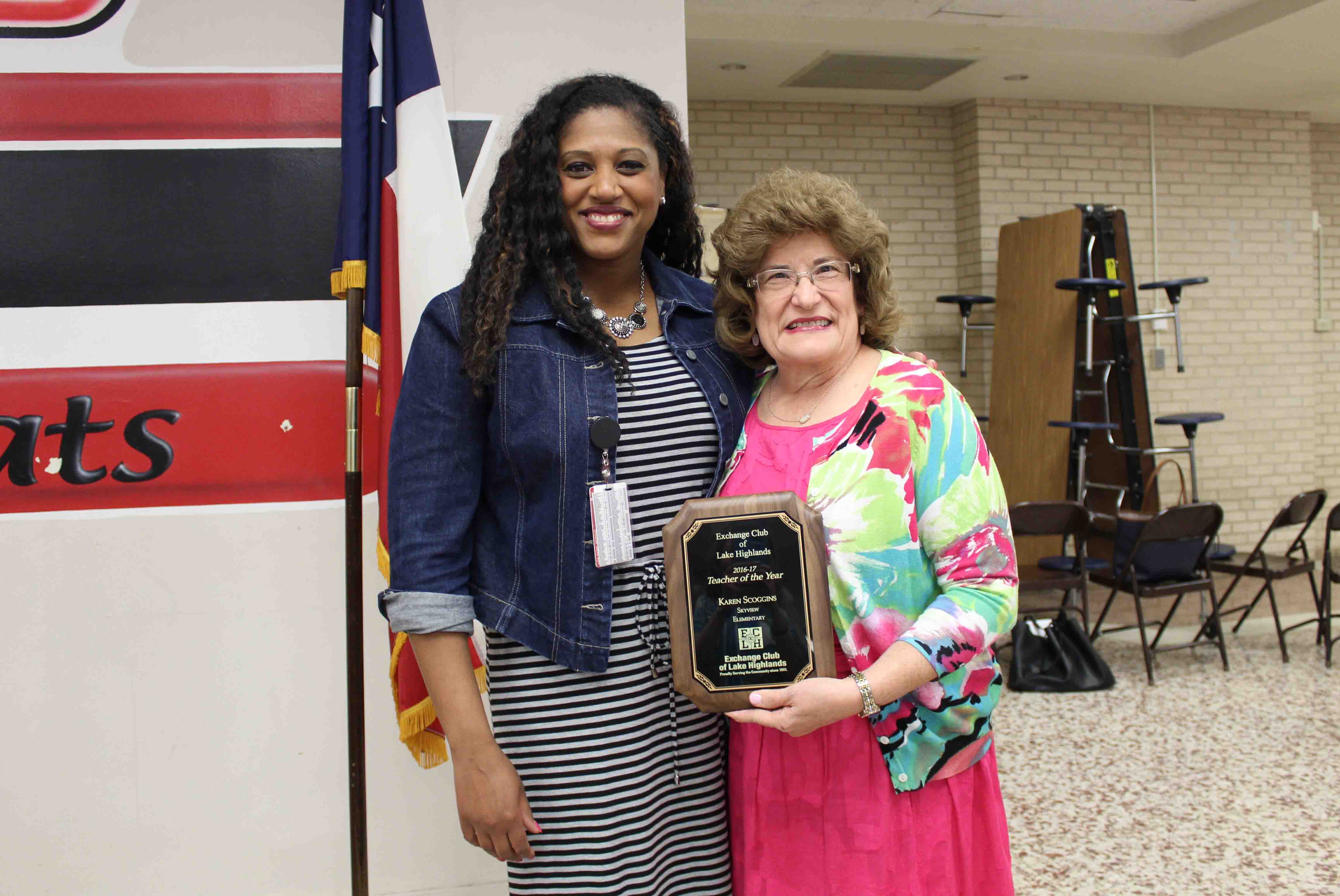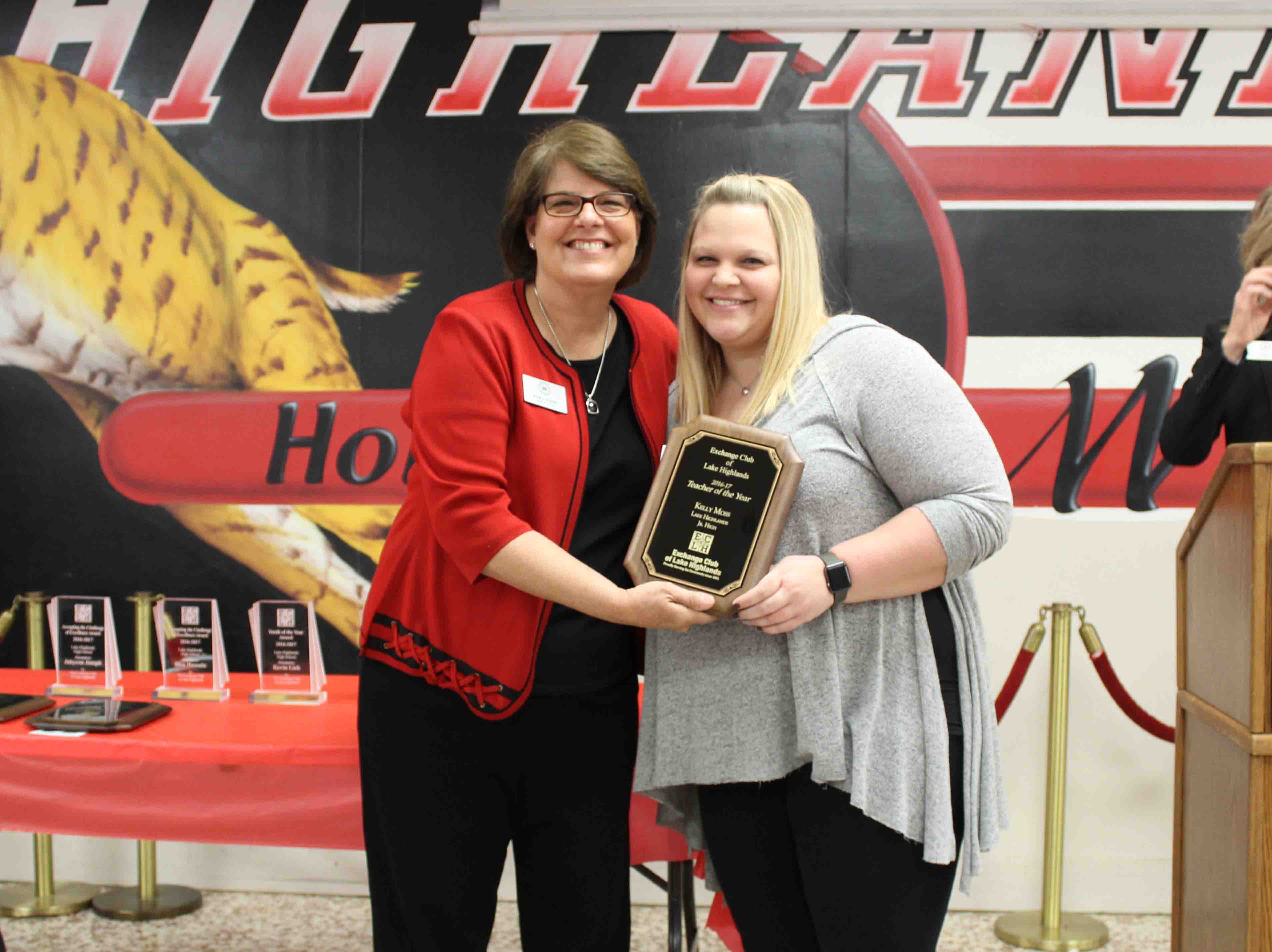 RISD Board President Kim Caston present Teacher of the Year Award to Kelly Moss