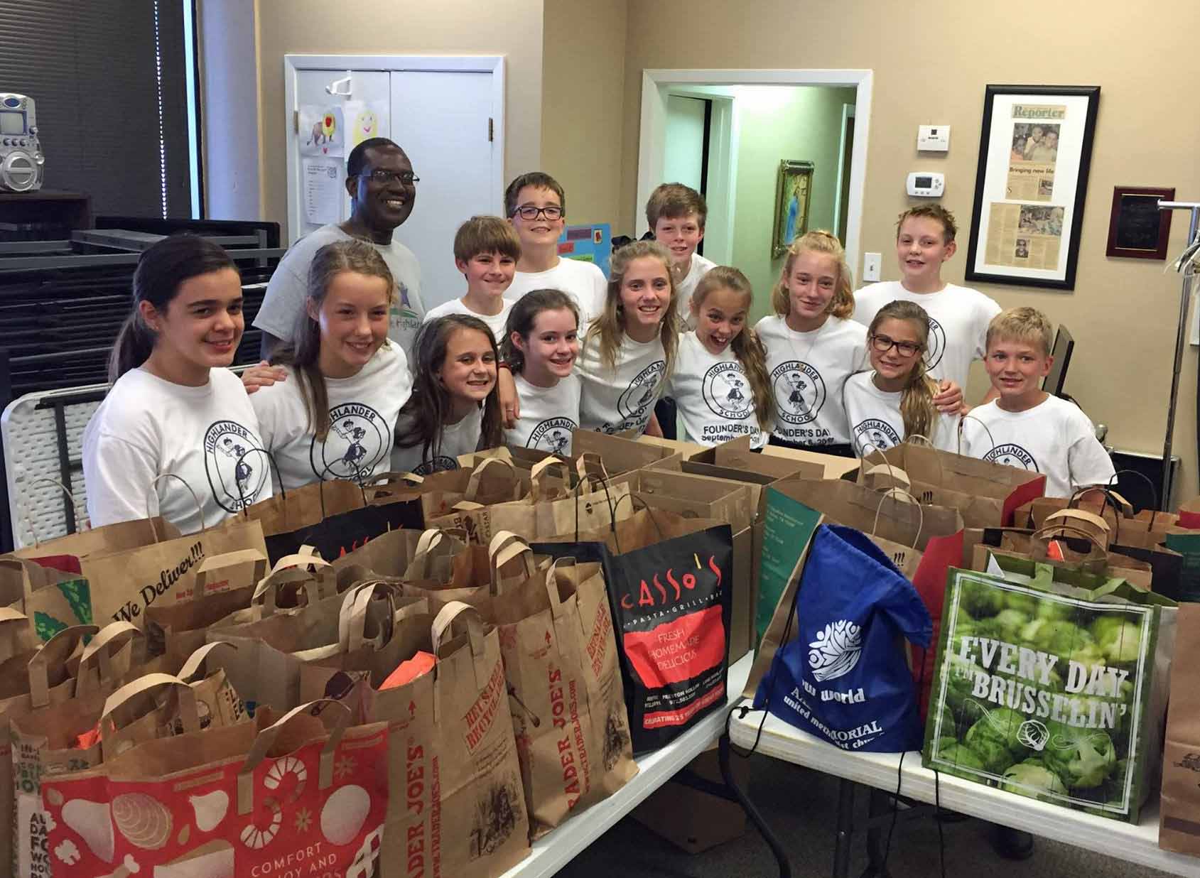 Sixth grade students at Highlander School rolled up their sleeves last week to pack and deliver food for needy families in the community via the Feed Lake Highlands program. In addition to delivering 205 cans and 422 bags of food donated by Highlander families, students moved 3000 pounds of food and bagged 100 shopping bags. Their efforts and the work of Feed Lake Highlands will result in dinners on the table for families in the LH community.