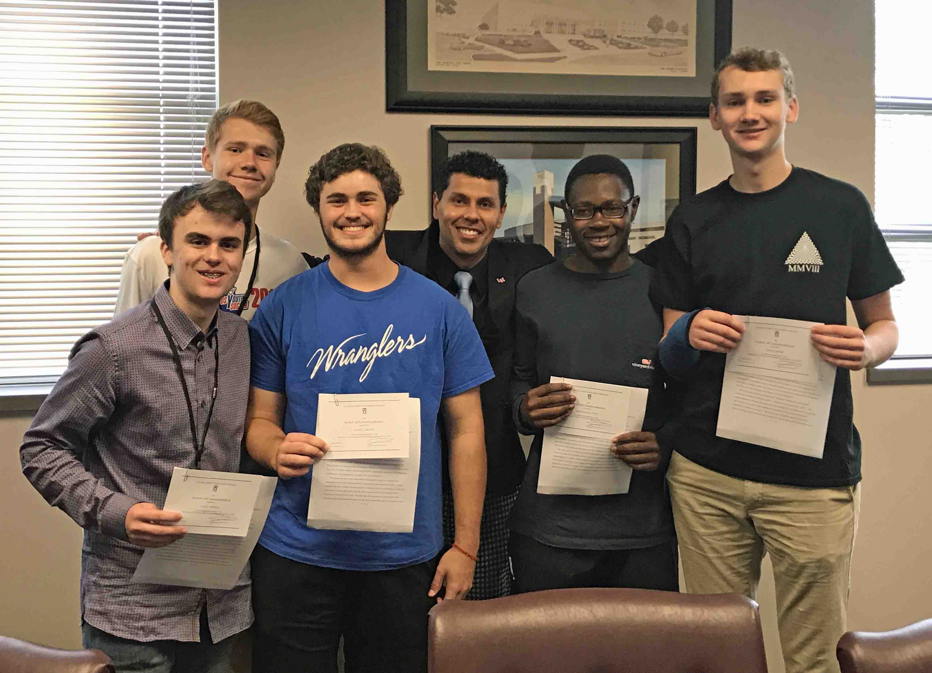 Cale Kimball, Robert Reed, Scott Griffin, Onyedikachi “Oby” Uche, Noah Henry and the late Austin Silva all earned Commended status for their achievement. Silva was also named a National Hispanic Scholar due to his high score and his Hispanic heritage.