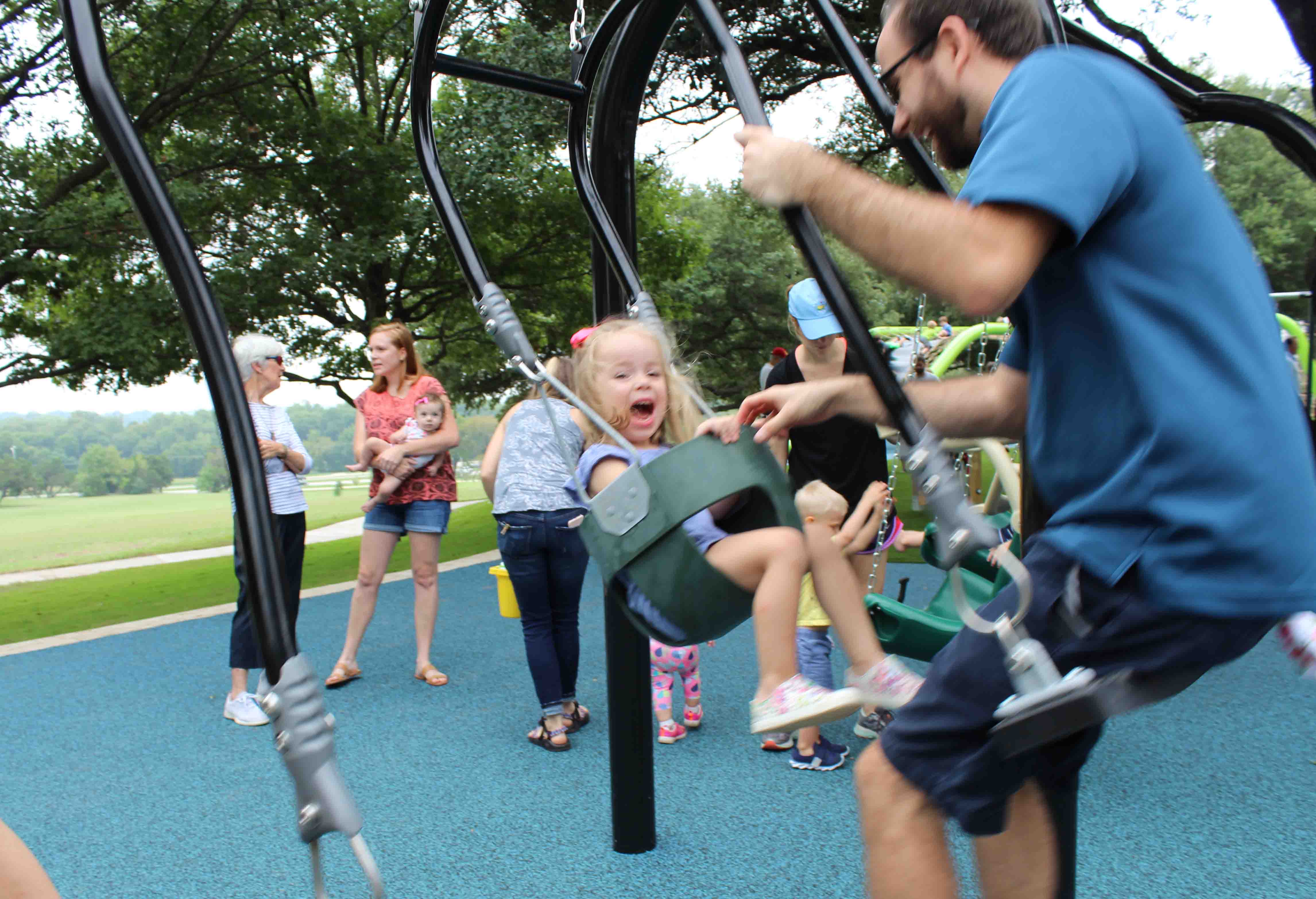 Spieth was on hand Thursday to dedicate the Signature Play Ground for People of All Ages and Abilities at Flag Pole Hill, a state-of-the-art play space designed to be safe and engaging for families with children of varying capabilities, and to allow even parents or grandparents with limited mobility to actively participate with kids on the go.
