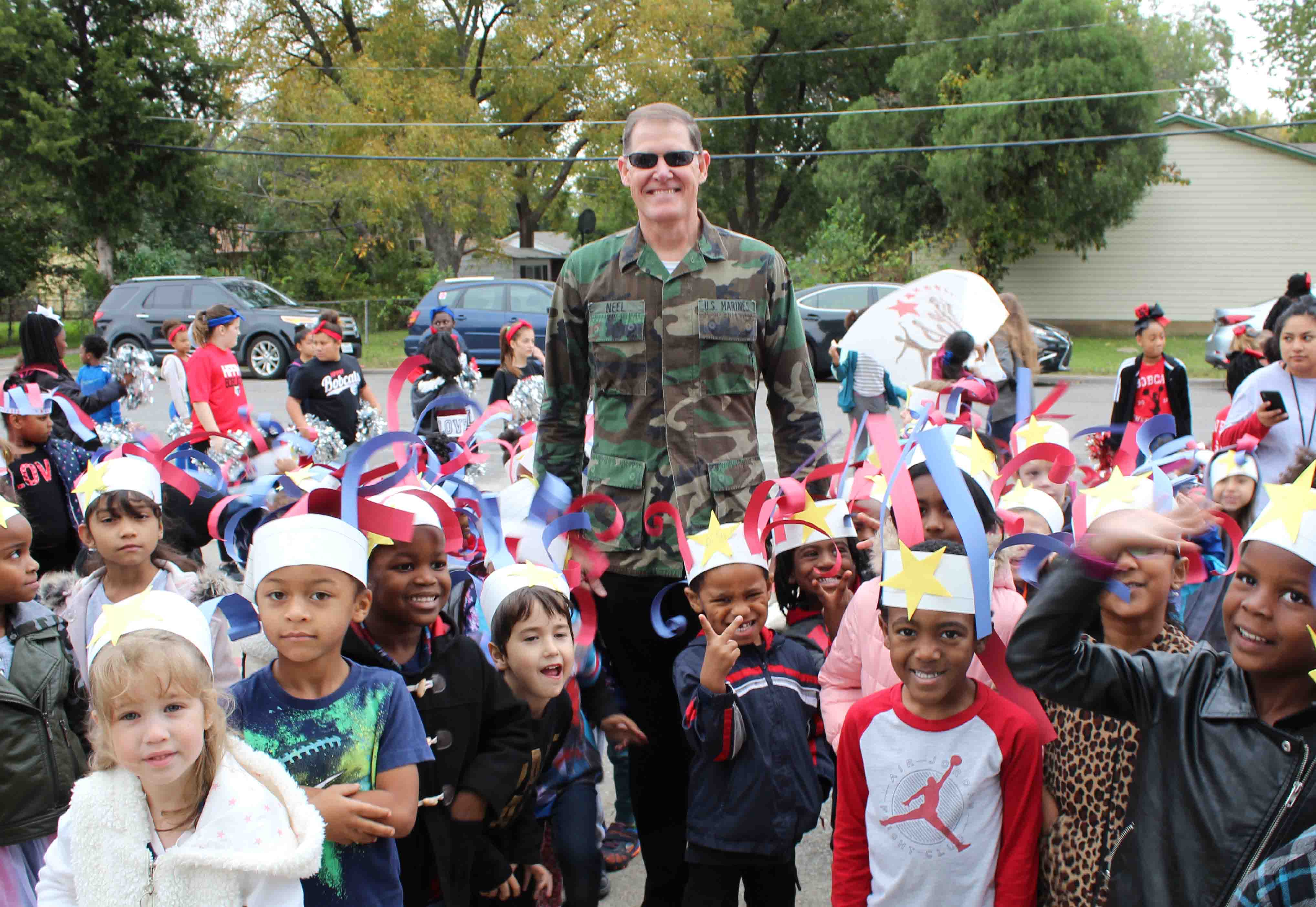 Caston introduced Francisco Carrero, grand marshal of the parade and 6 year veteran of the Irving Fire Department. He’s also husband of Ashley Carrero, HPPM second grade teacher.