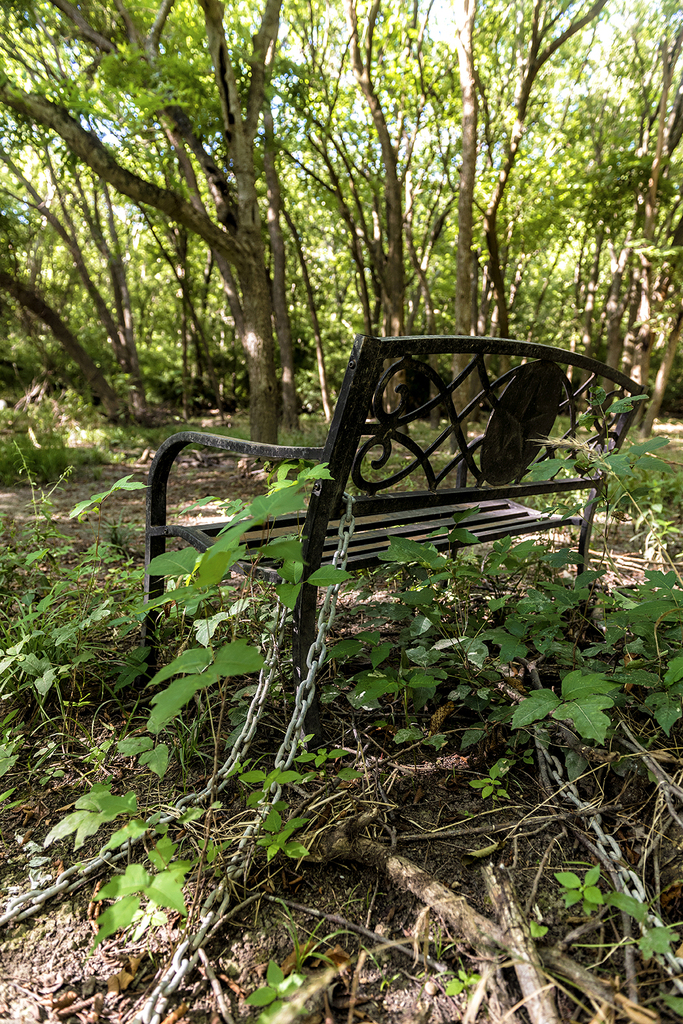 The surrounding area is one of Dallas’ few remaining swaths of native prairie vegetation. On temperate mornings, a handful of neighbors — their off-leash dogs typically nearby — greet one another and rehash recent coyote and snake sighting. They rest on benches situated against tree trunks. Grunnah and his neighbors installed the amenities — the seats and swing. “We had two more benches,” Grunnah says. But one was stolen and wild bushes obscure another. (City staffers have since removed the swing and remaining benches).