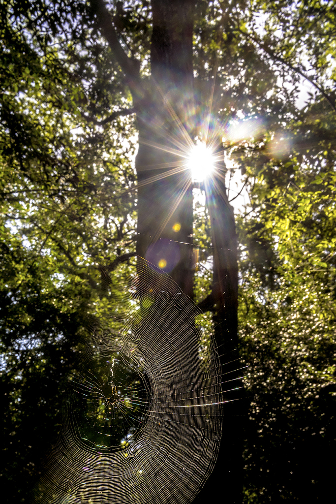 “We call it the cathedral,” he says. Alone in the opening, the whistling birds and crunch of a few leaves underfoot might be the only sounds. Sunlight peeks through treetops. All around, a wall of towering grass — also a swing dangling from a branch — sways to a slight breeze.