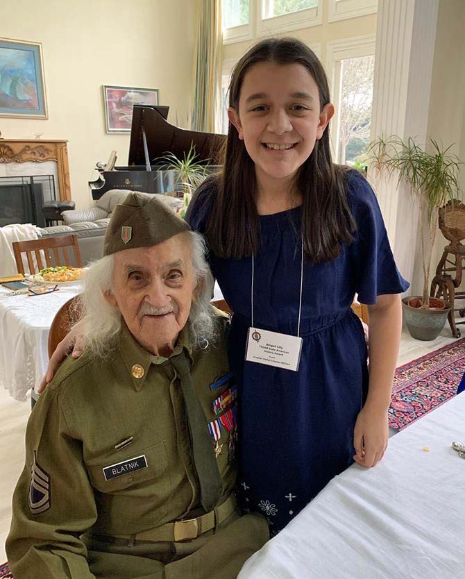 Abby recently visited the Greater Dallas Chapter of the DAR, where she received their local award and was feted by members of their organization. She also met 96-year-old Sgt. Major Robert Blatnik, a D-Day veteran whose story of returning to Normandy was captured by CBS 11’s Doug Dunbar in the 2013 report viewable below.