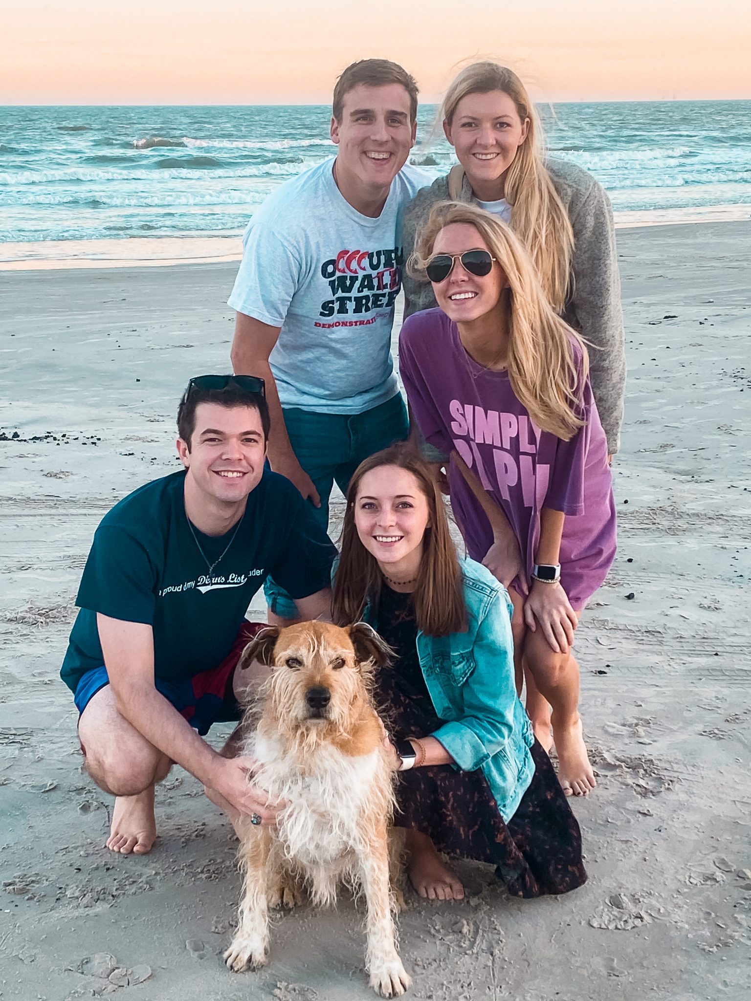 “Pictured is my husband, Scott; my two sisters; Caroline and Sarah; my parents: Andrew and Diane Combs; our dog, Nelson, and my sister’s boyfriend Brett Stell.”