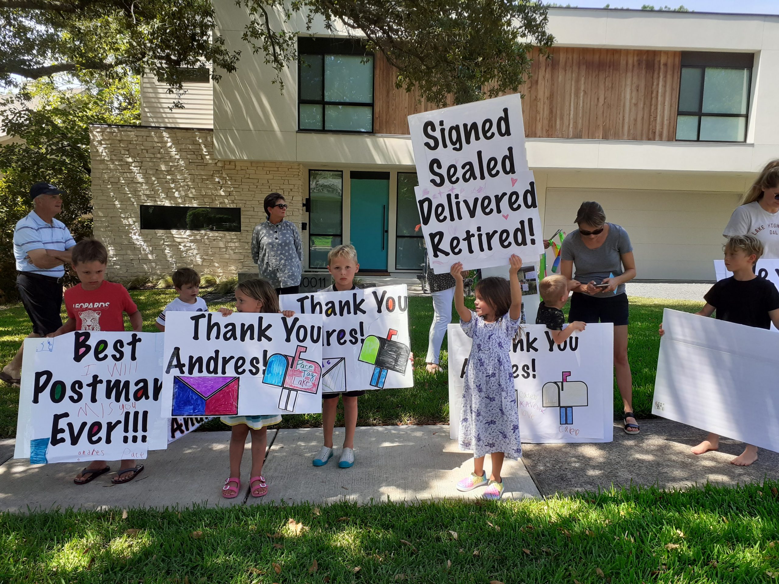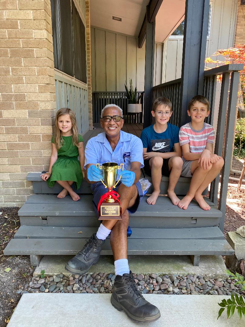 On Thursday, June 18, neighbors threw Garcia a surprise retirement parade. Children lined up with posters and gave Garcia a “Best Mailman” trophy.