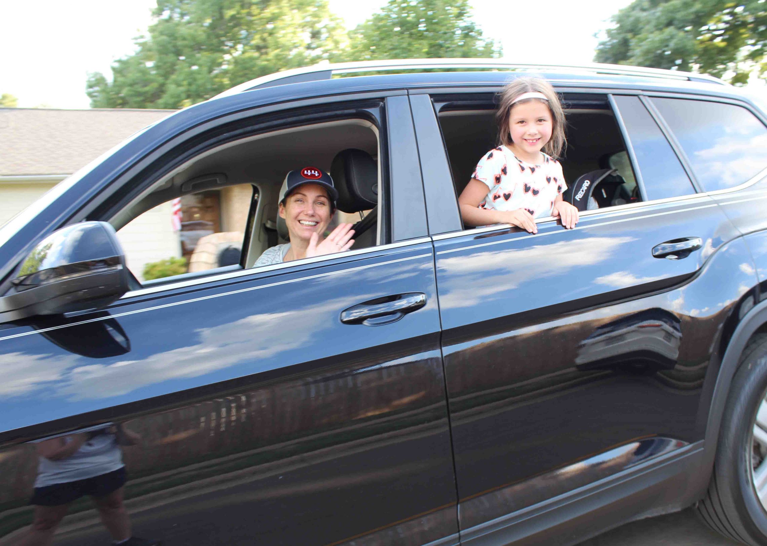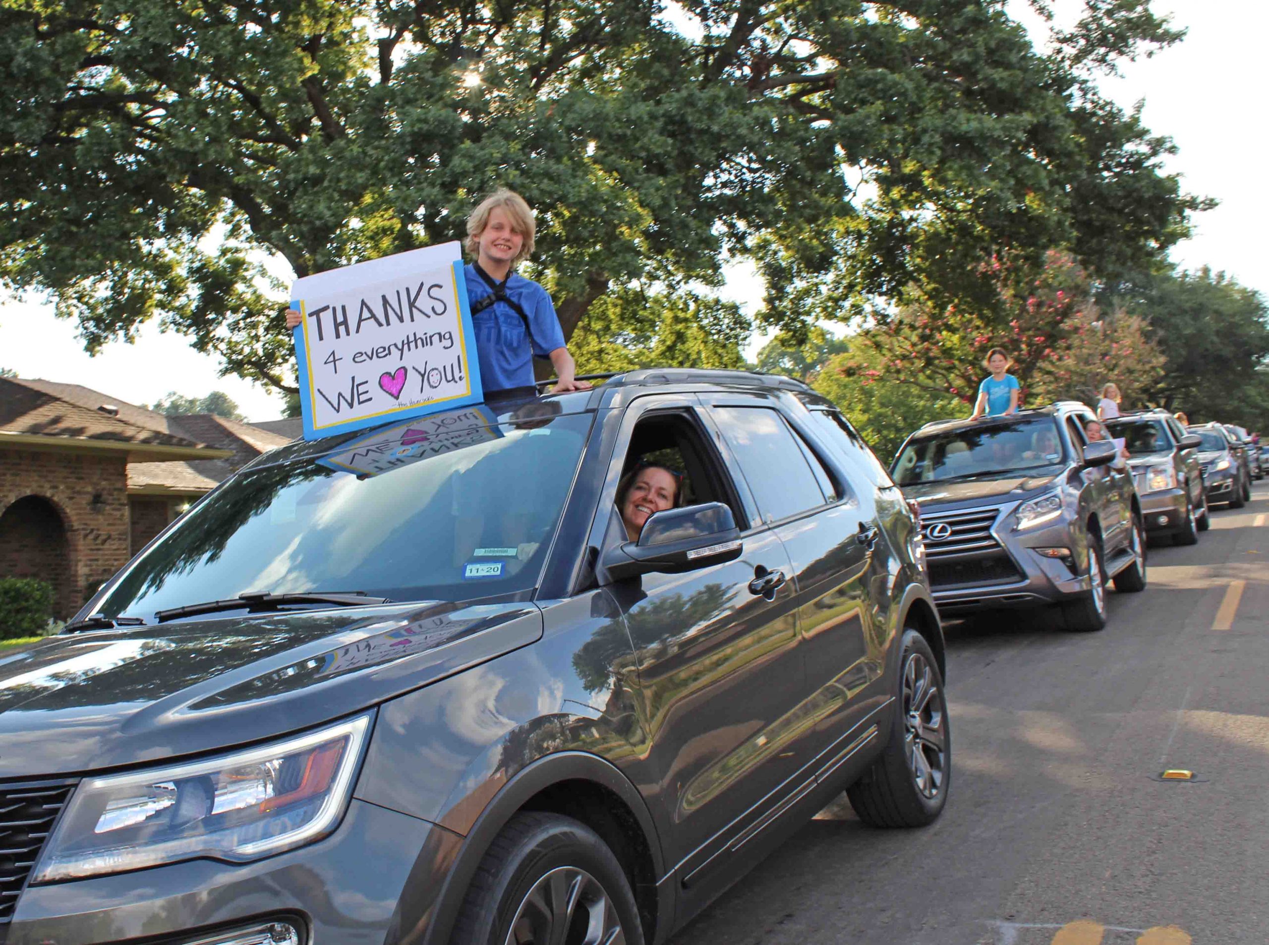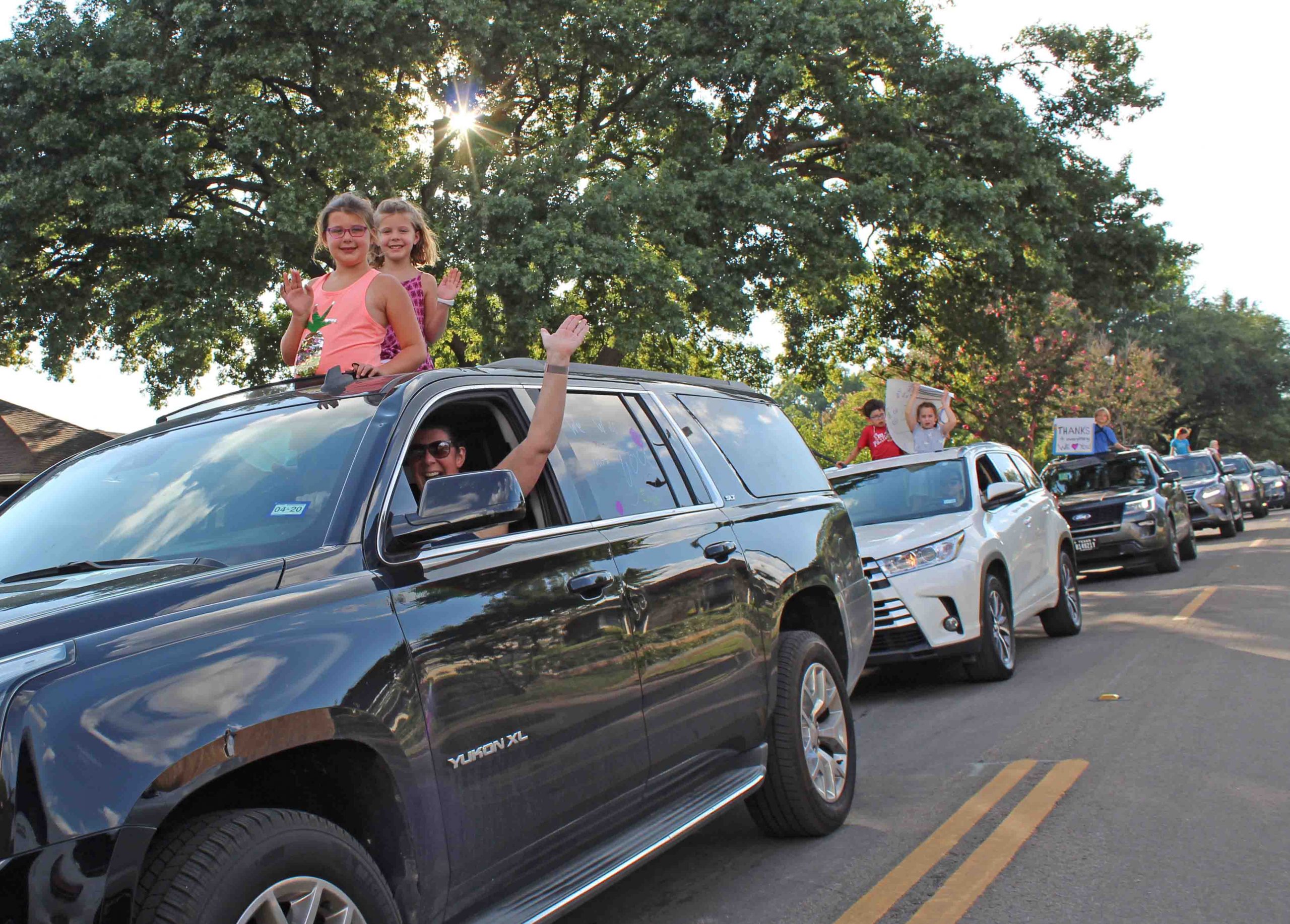 SUVs full of sunburned children lined up for blocks Wednesday, honking their horns and waving signs of support.
