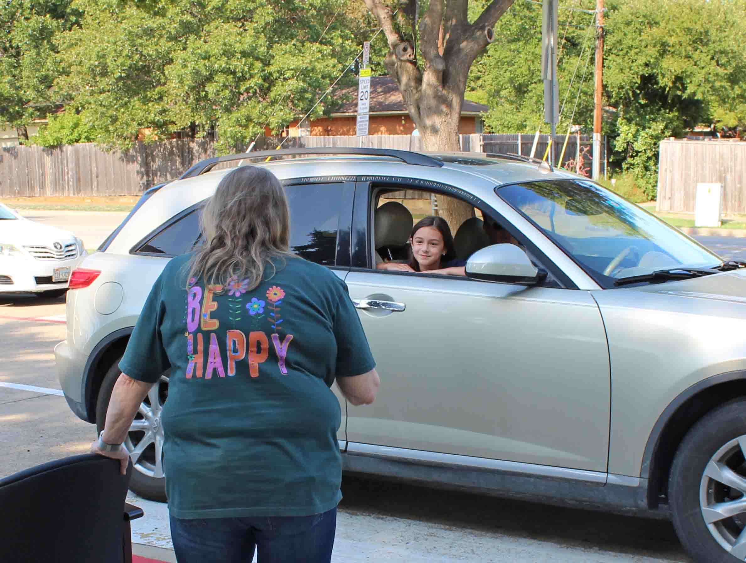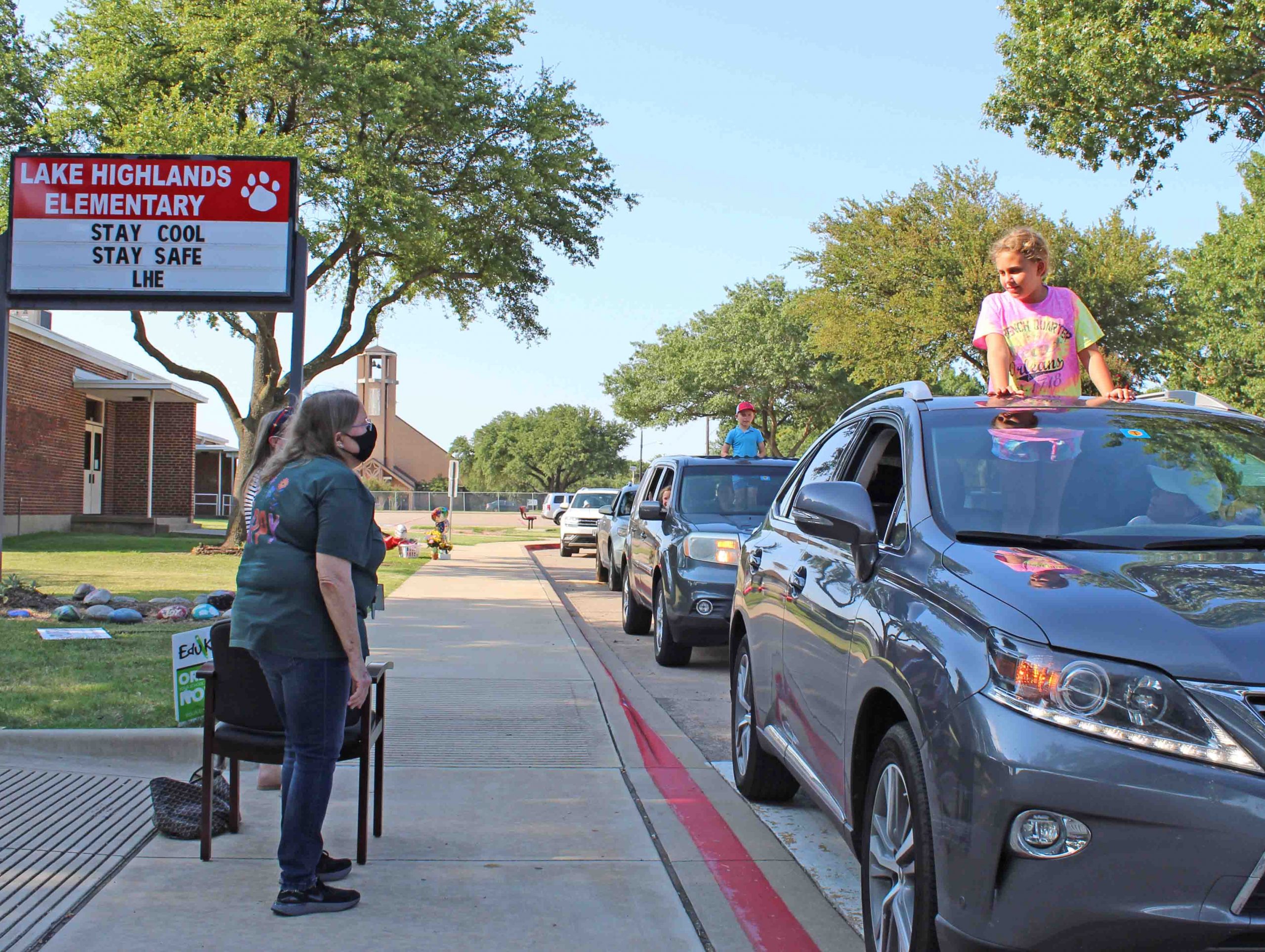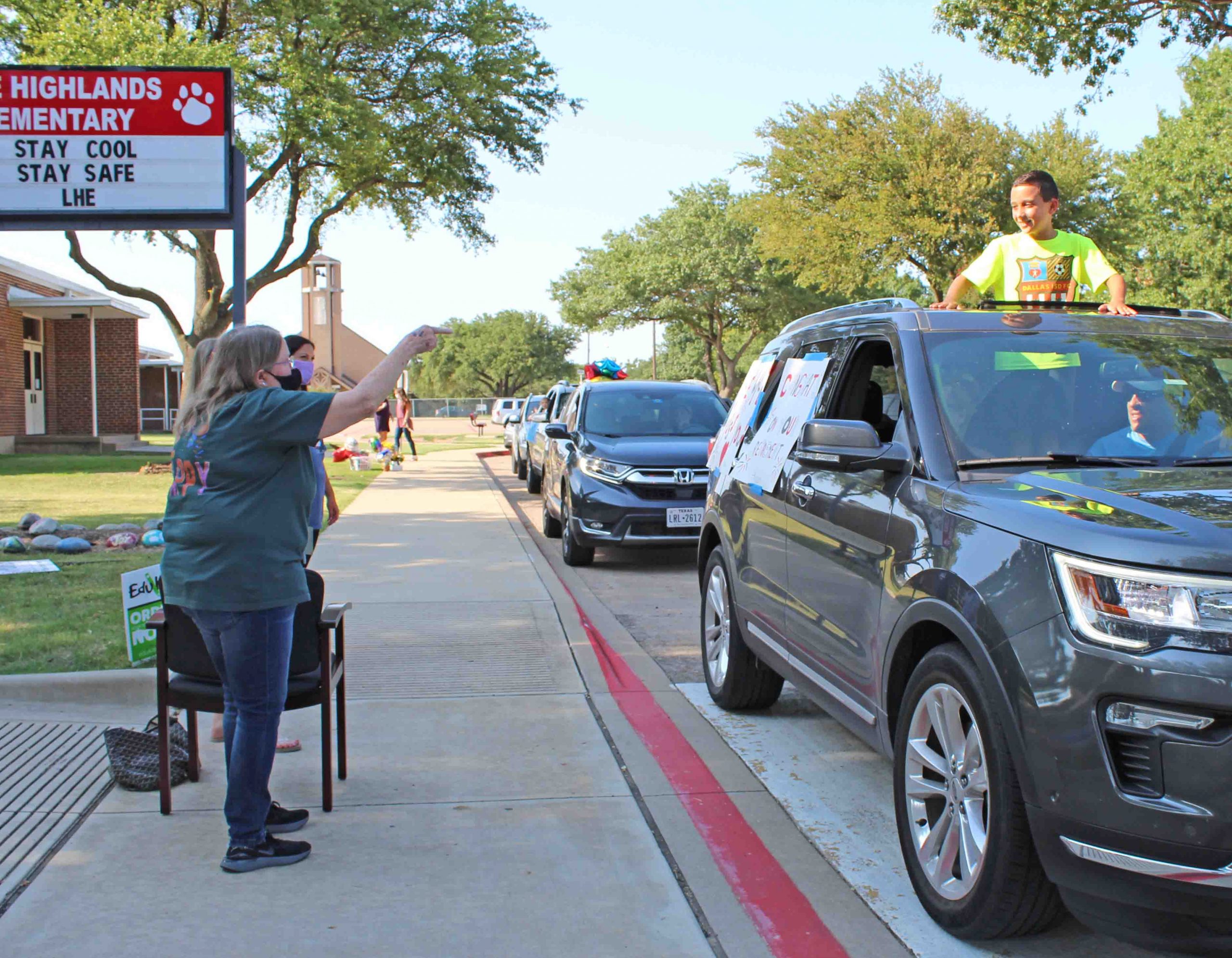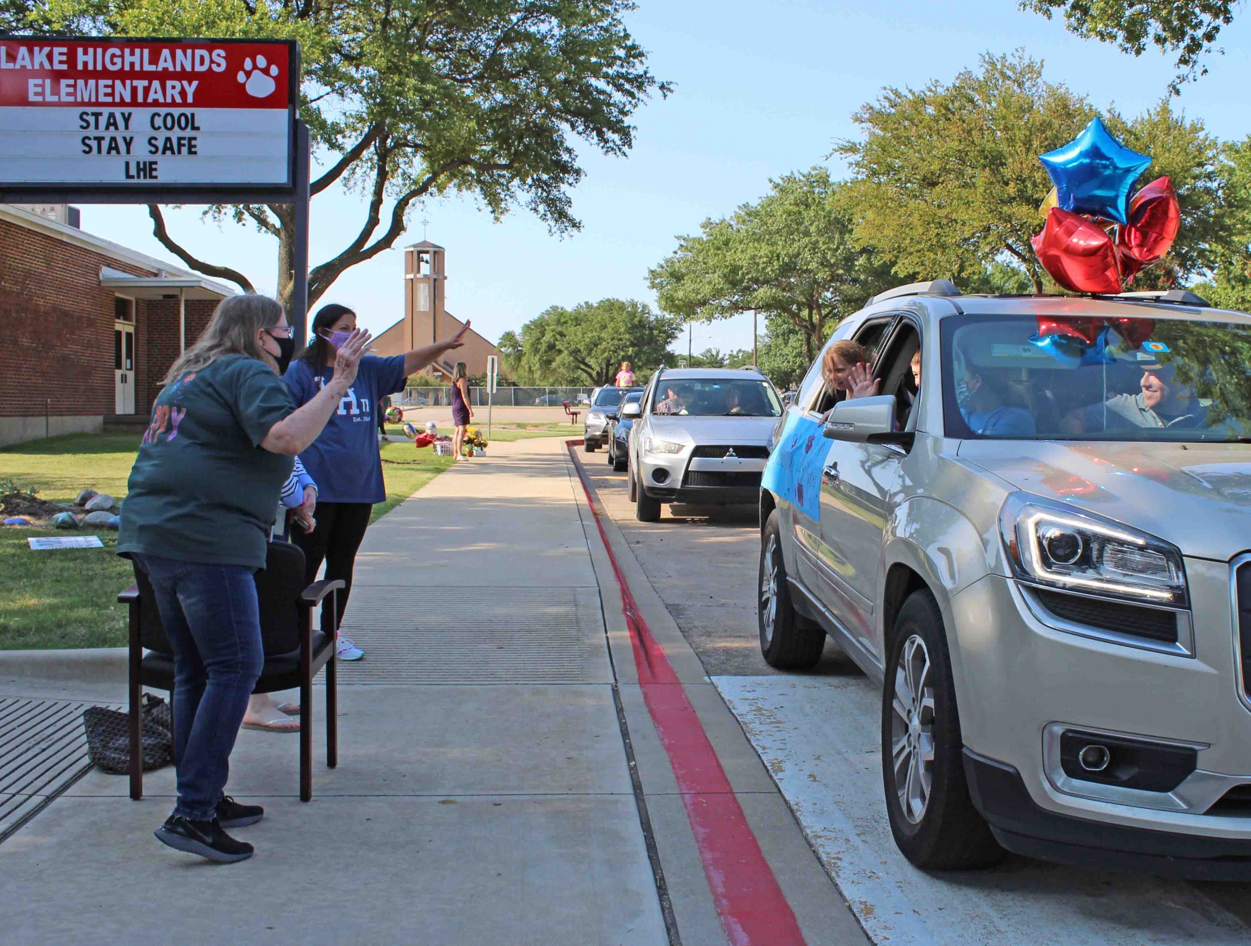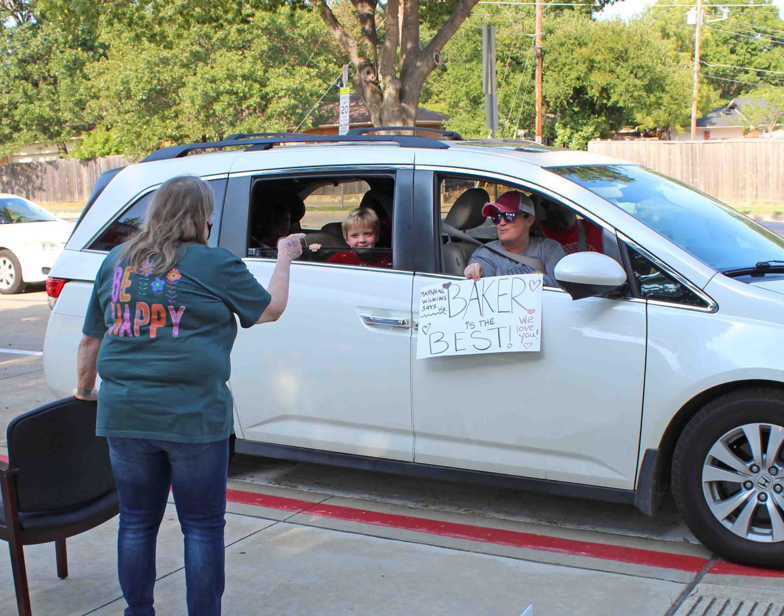 Denise Baker announced her retirement after 30 years teaching Kindergarten at Lake Highlands Elementary, and admirers threw a parade Tuesday to wish her well. The line of cars filled with former students, parents and teaching friends stretched from LHE’s circular drive down Ferndale and along Walnut Hill.