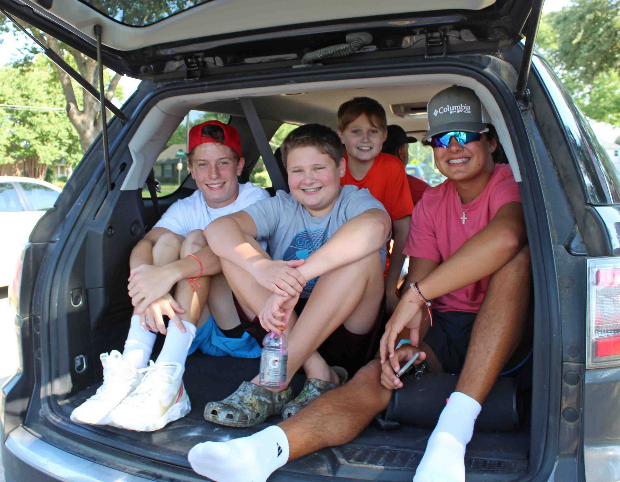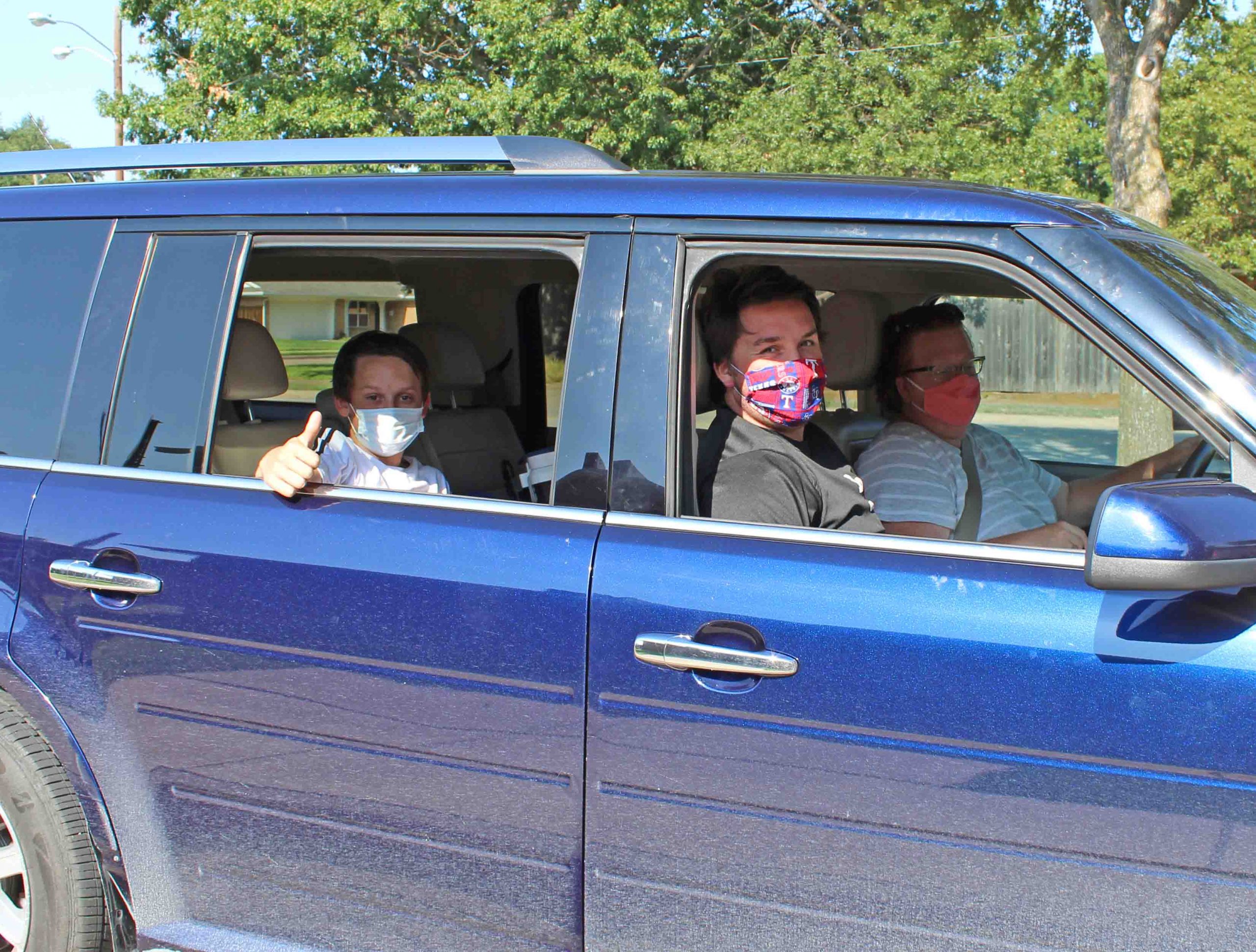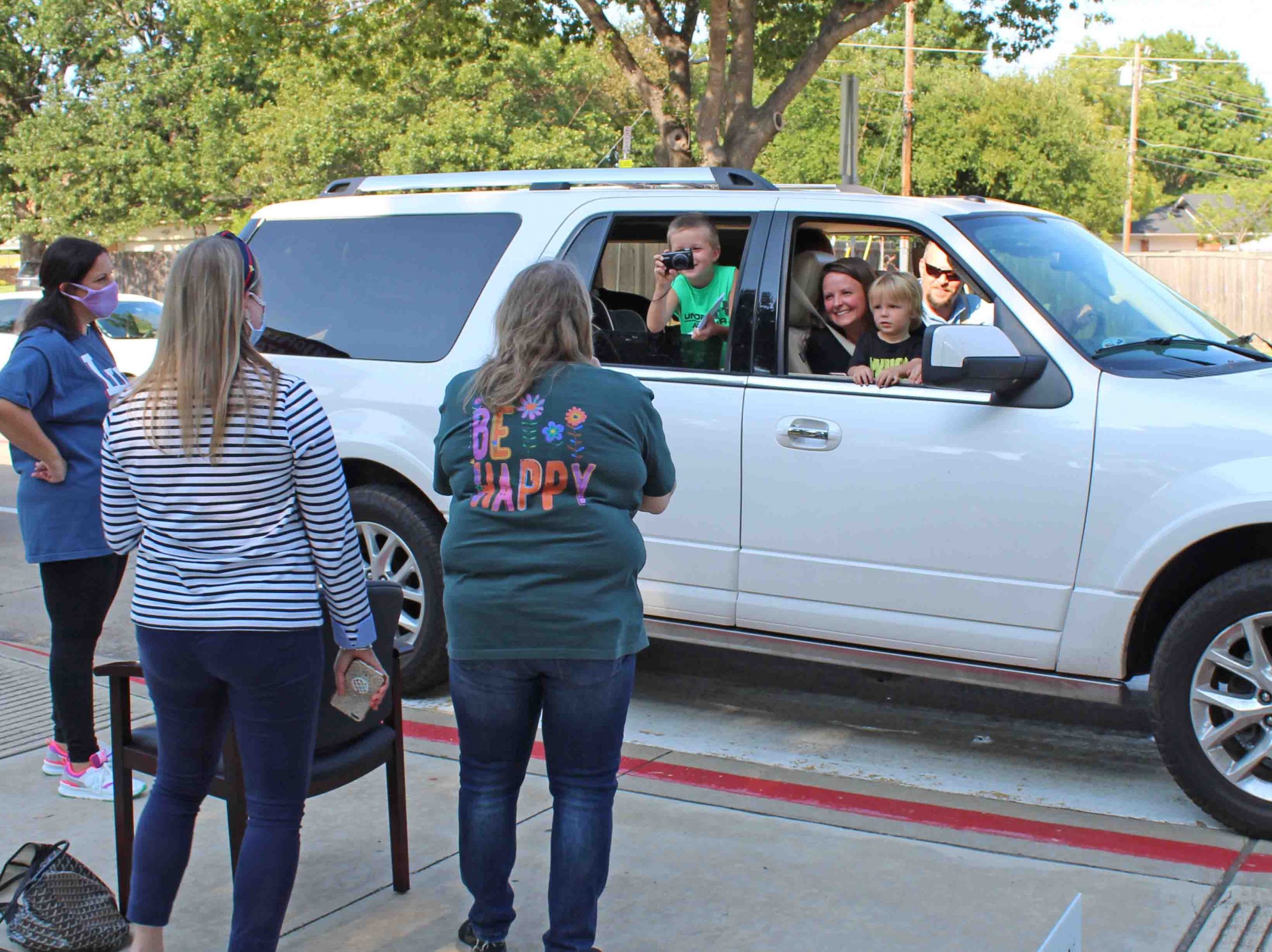 Admiring families decorated their cars with balloons, tassels and hand-stenciled signs to profess their devotion and wish their teacher “happy trails.”