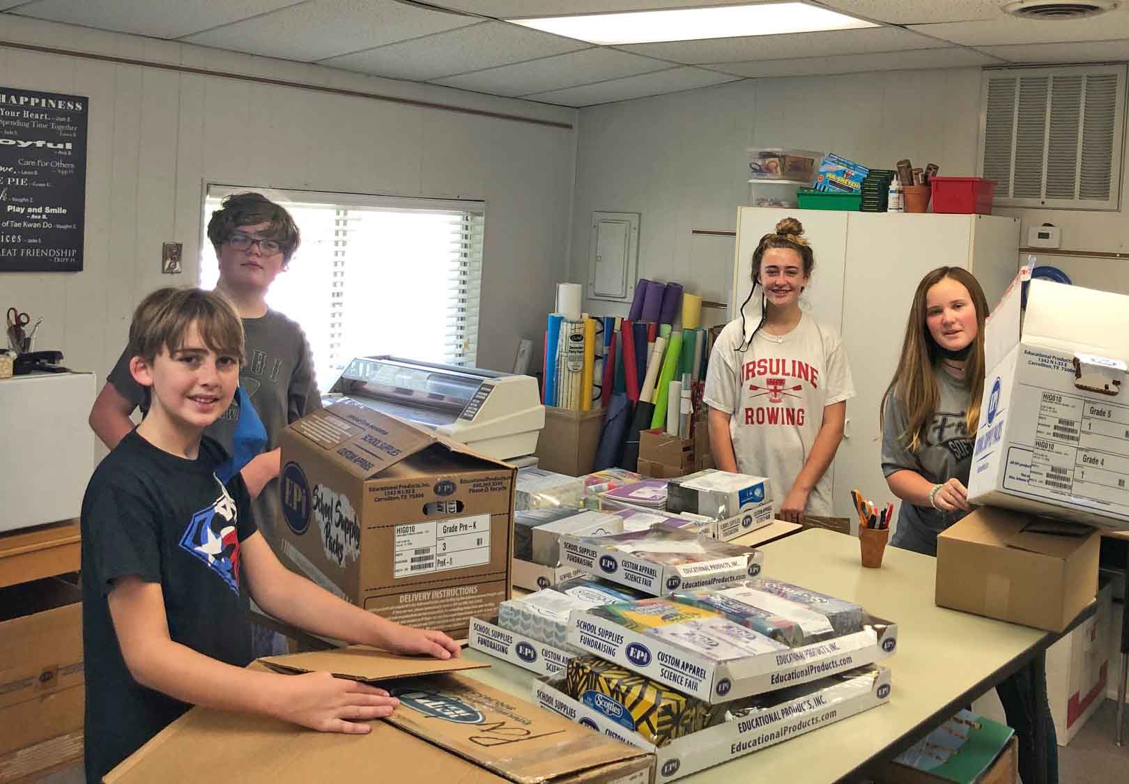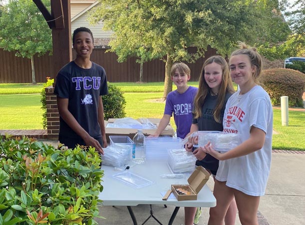 Demonstrating leadership and organizing volunteers is part of the process to becoming an Eagle Scout. Timmons’ crew, as shown in the photos, include Ursuline sophomore Ruby Farley (white tee), St. John’s 6th grader Lukas Farley (black SPCA tee), Alcuin School sophomore Stanley Turner (black TCU tee) and St. Thomas 7th grader Cooper Timmons (brown Maui tee).