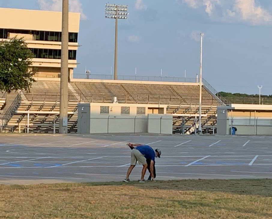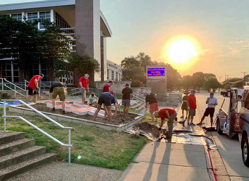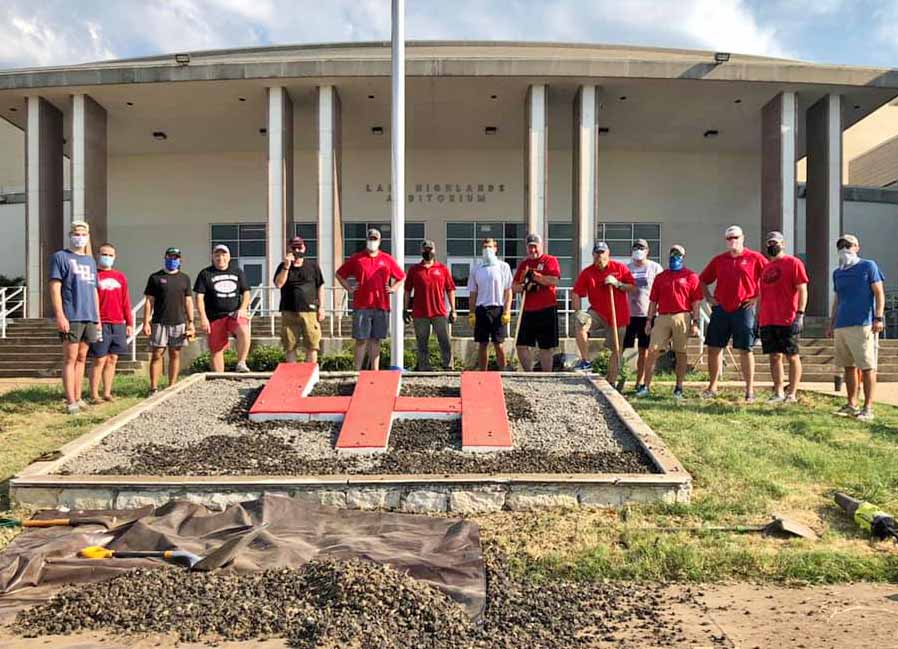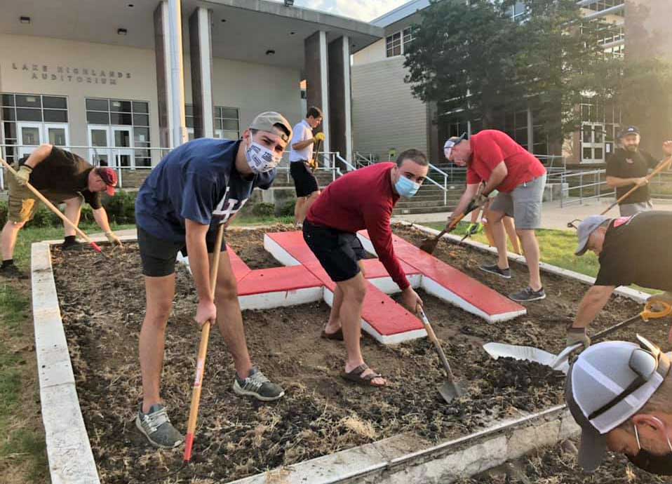 The Lake Highlands High School Bell Boys assisted members of the Exchange Club Saturday, cleaning up campus grounds and freshening the “LH” sign in front of the school’s auditorium.