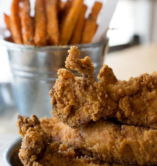 Crispy chicken and sweet potato fries at Shady’s