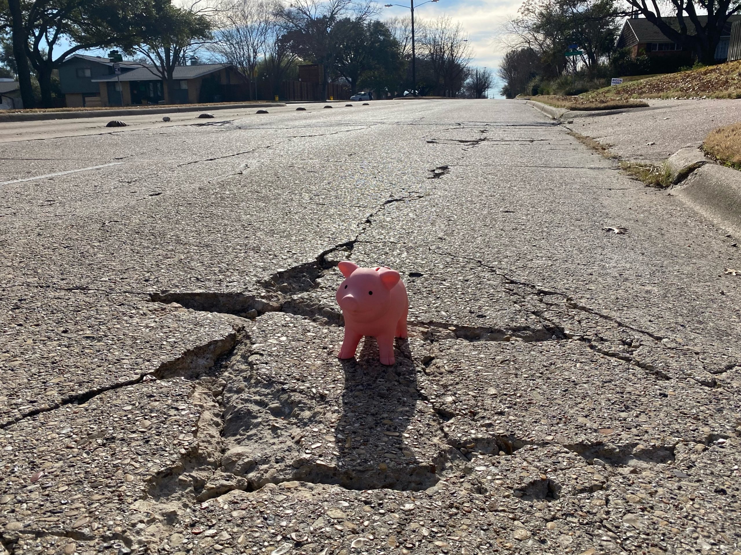If you’ve been an Advocate reader for awhile, you will recall Porky the Pothole Pig. Porky is back after a five-year hiatus from Lake Highlands to give you a heads up on the neighborhoods nastiest potholes.