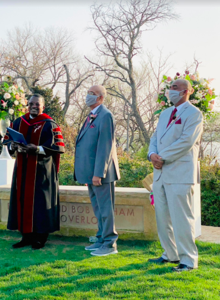 The couple renewed their vows Saturday in front of 75 (masked and socially distant) guests at the Arboretum. Donna’s grandson walked her down the aisle as Knock stood at her side as matron of honor. The couple’s son served as the best man.