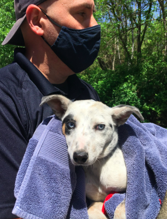Two days later, firefighter James Tooter Hayes, who helped with the rescue, adopted the dog and named her Grace.
