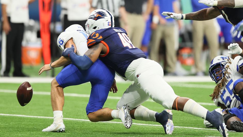 Bell, a redshirt junior, was named Conference USA Defensive Player of the Week Sept. 20 after posting four tackles, two sacks, one forced fumble and a pair of quarterback hurries to help UTSA hold Middle Tennessee to 199 yards, including just eight on the ground. In the Roadrunners’ win over Louisiana Tech Saturday, he combined with Clarence Hicks for a third-down sack to help his team win 45-16.