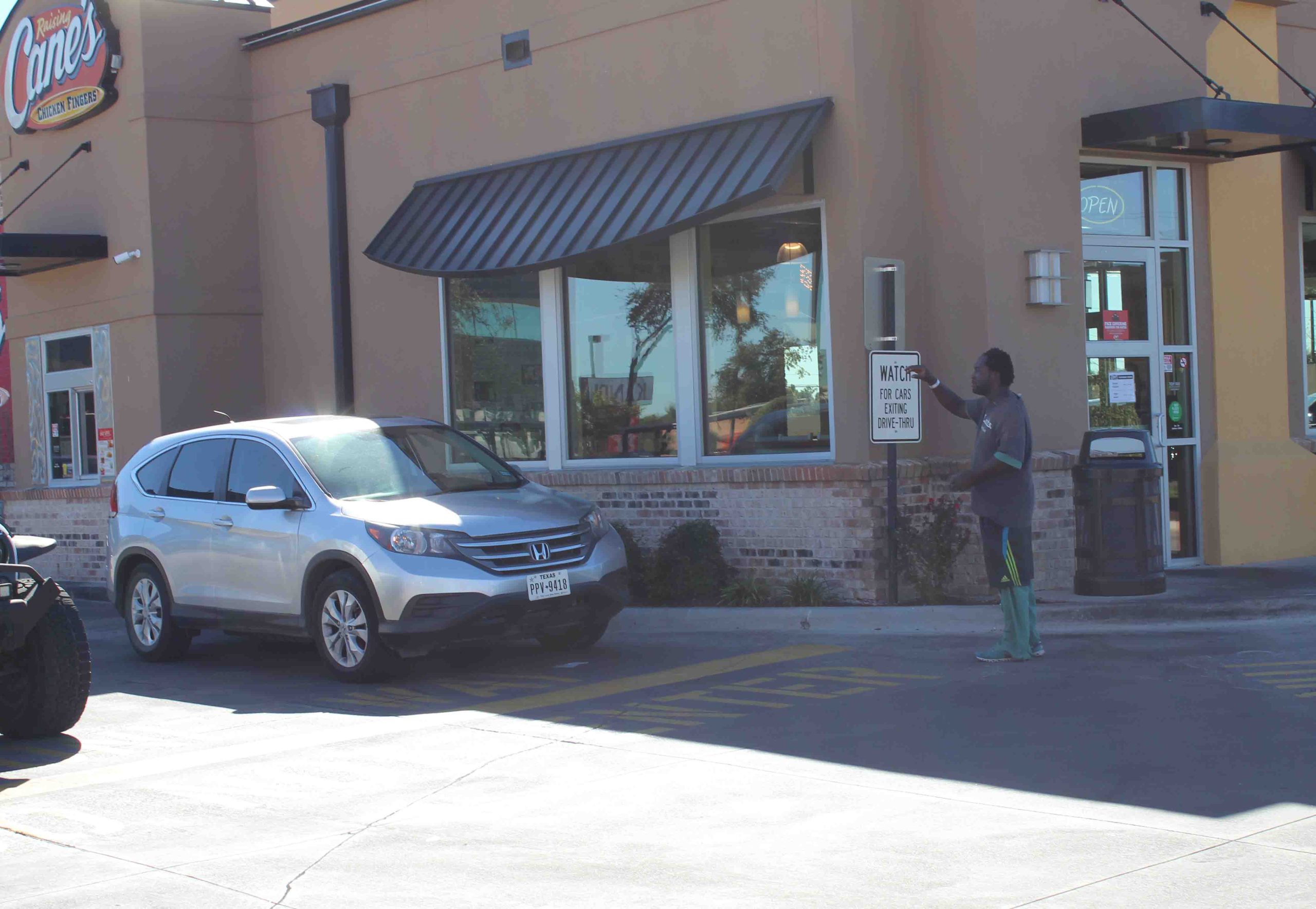 A man asks for money in the drive thru at Cane’s.