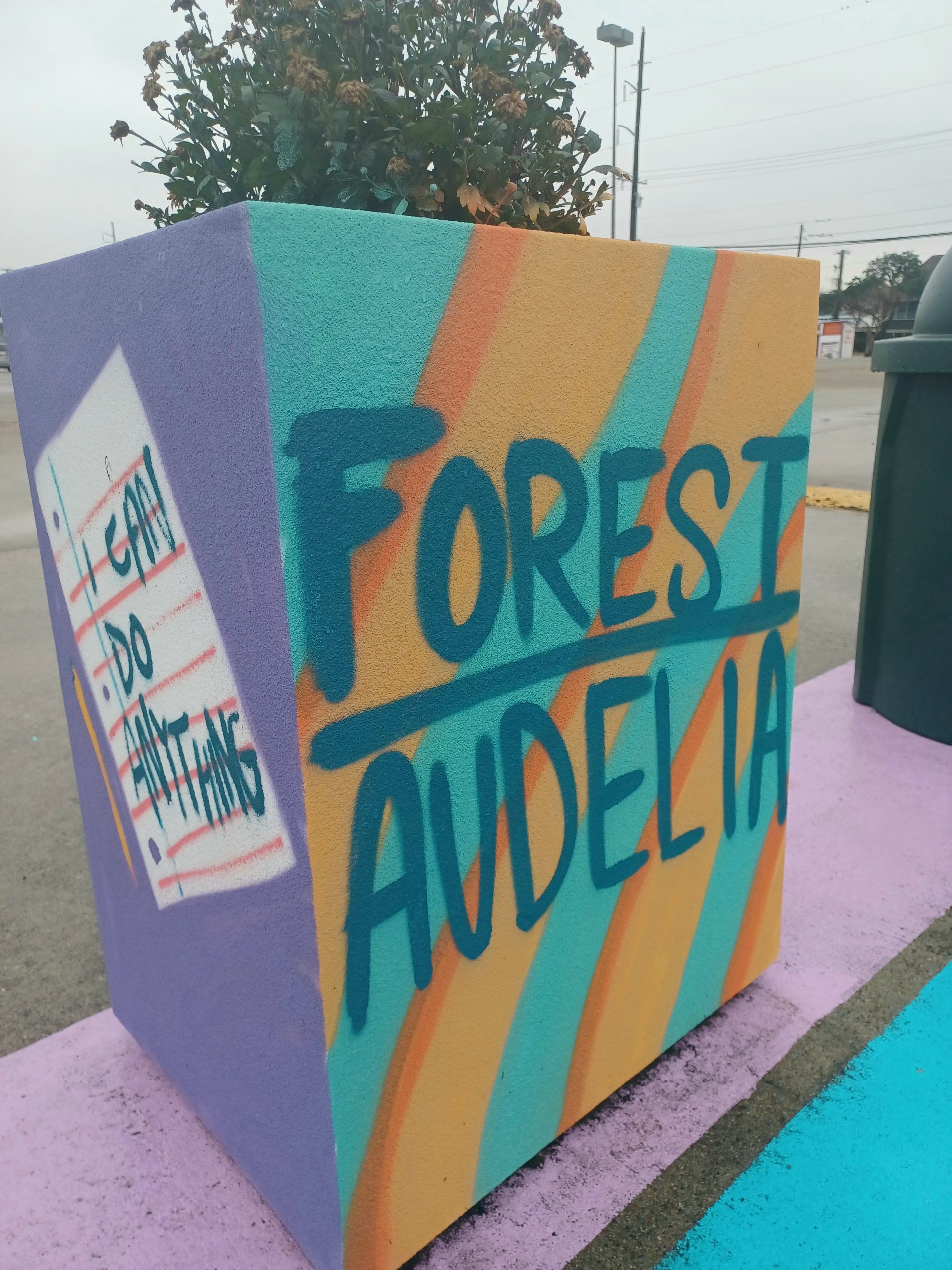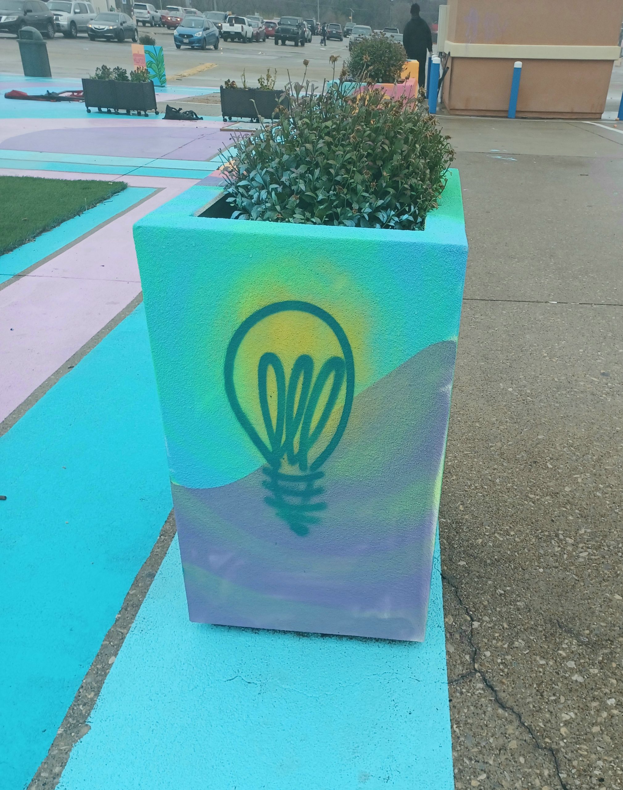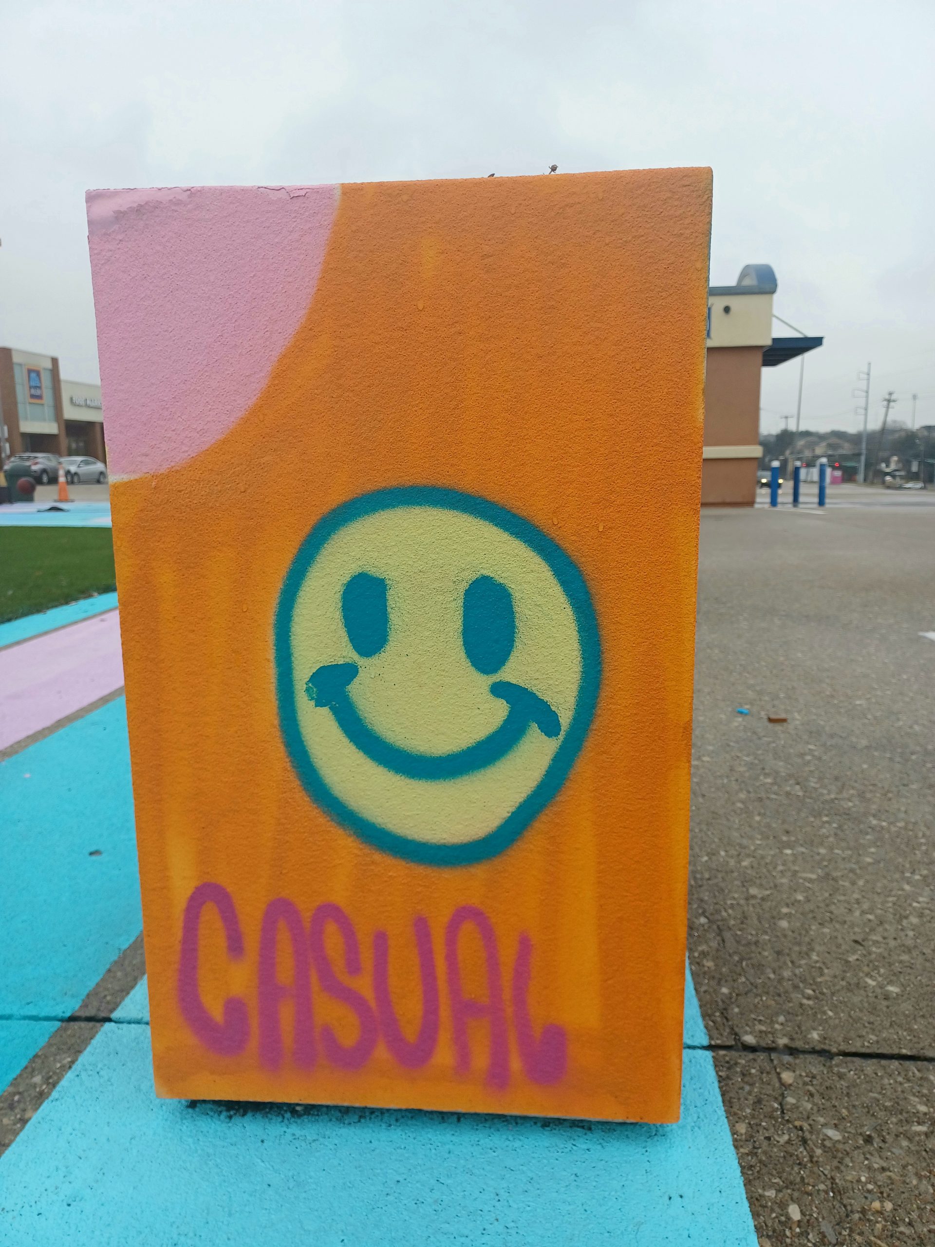 Captain Casual’s artist tag, a bright smiley face, can be spotted on some of the block planters. And just who is Captain Casual? A quick look at his Instagram reveals he is an artist who splits his time between Miami, Dallas and Los Angeles.
