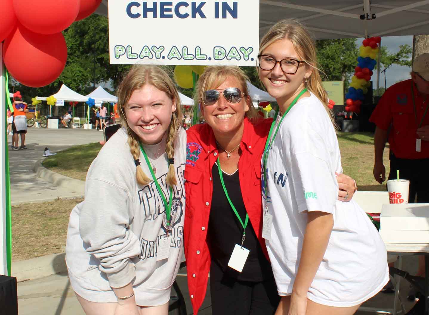 Savannah, Jennifer and Annabel Davidson welcome volunteers at Play for the Day.
