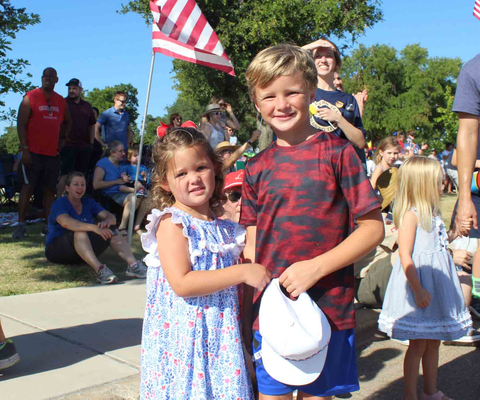 Kids in red, white and blue lined the parade route along Church Road.