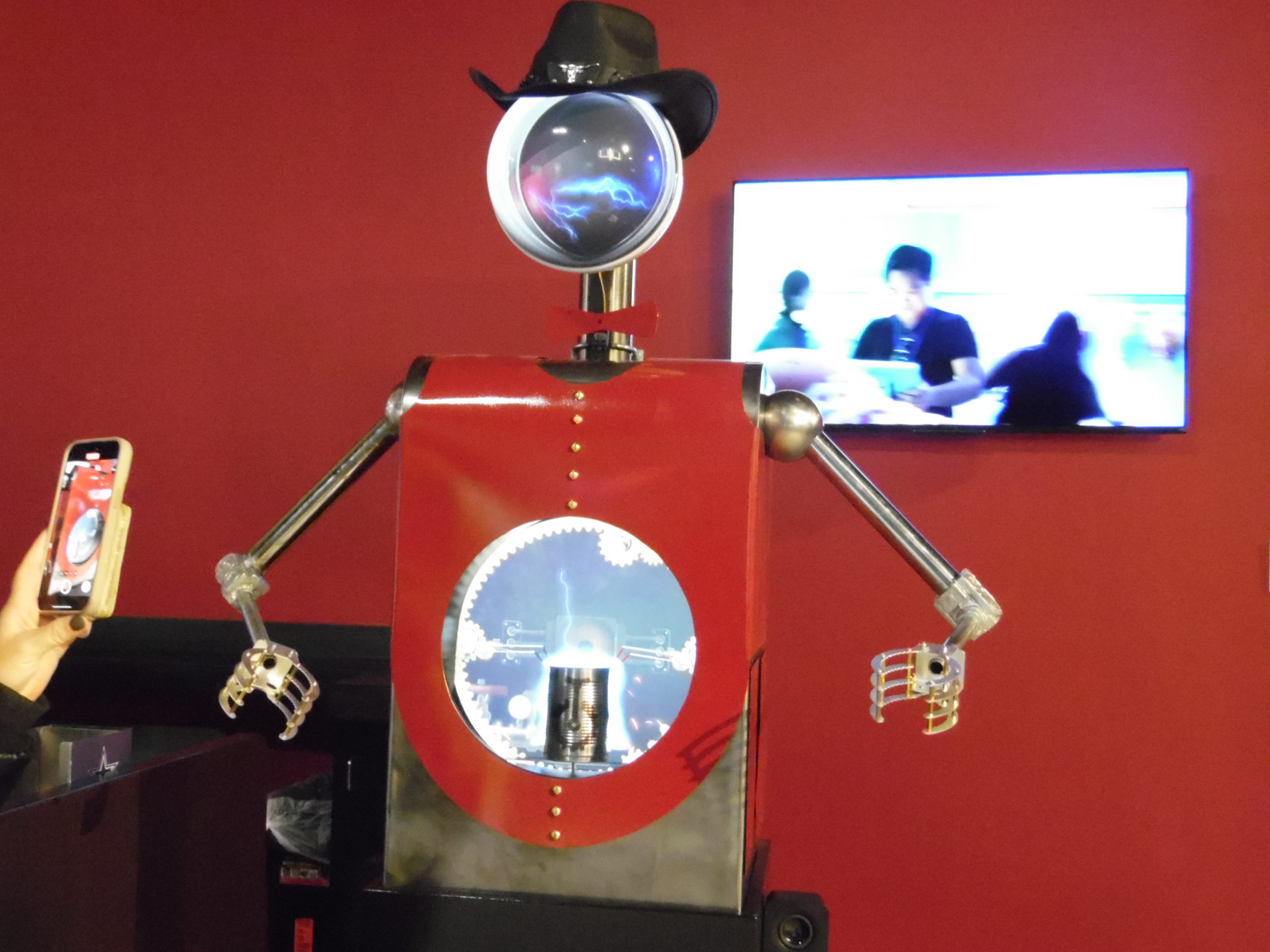 - A robot that performs a smoke and mirror show to produce a drink.