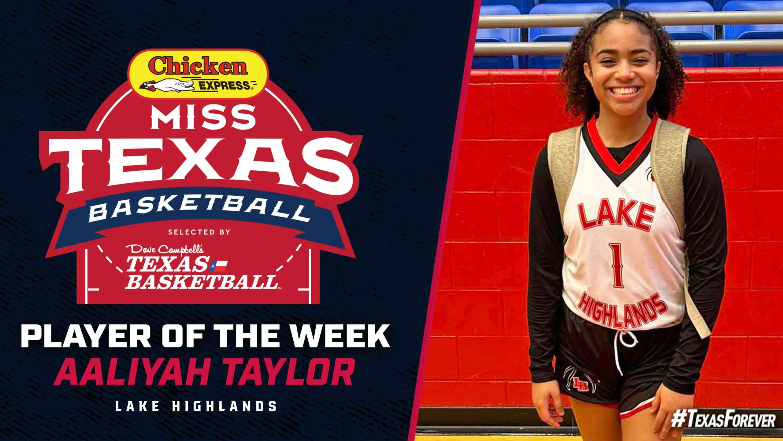 Lake Highlands sophomore Aaliyah Taylor was named “Miss Texas Basketball Player of the Week” by Dave Campbell’s Texas Basketball after a week of online voting. She competed against some of the state’s most accomplished players.