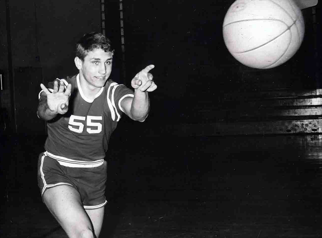 Members of the 1968 team were Jerry Allen, 5’10” Sr; Bill Brock, 5’11” Jr; Reggie Duck, 6’1” Jr; Gary Grinsfelder, 5’10” Sr; Emil Jacobs, 5’10” Sr; Robert LaFevers, 6’3” Sr; Richard Langdon, 6’8” Sr; George Parker, 6’1” Jr; Bart Patey, 5’9” Sr; Bob Schmidt, 6’5” Sr; Mike Scobee, 5’11” Sr; Wyatt Standifer, 6’1” Jr; Doug Tanck, 6’5” Sr; Eric Teter, 5’10” Jr; & Cleve Whitener, 5’11” Sr.