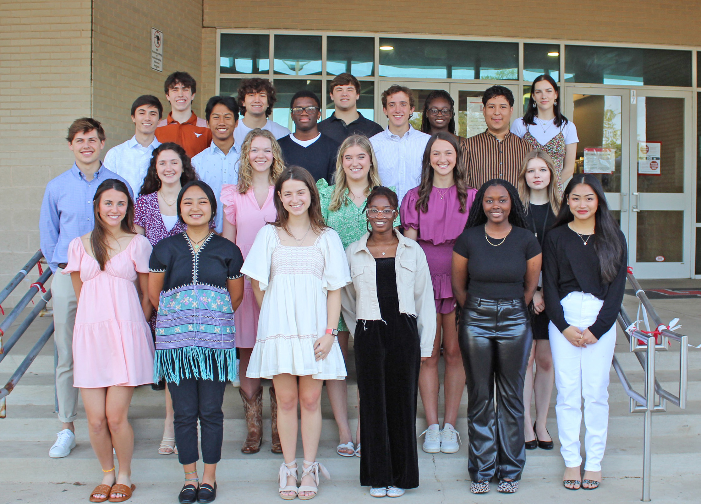 Recipients were Josephine Akinrotimi (UT Arlington), Maxwell Allen (University of Texas), Archer Davies (Oregon State University), Allie Delgado (University of Texas), Fathia Fasasi (Georgetown University), Victor Flores Sanchez (TCU or Baylor), Fiona Hasse (Hardin-Simmons University), Josie Howell (University of Texas), Ellie Jordan (Dallas Baptist University), Colin Keaton (Texas A&M University), Sher Moo Ku (Austin College), Cung Lian (University of Arkansas), Logan Lusignan (University of Dallas), Joy Ngungi (UT Arlington), Carson Payne (University of Oklahoma), Kendall Schorn (Texas A&M), Gabriel Scott (Purdue University), Charlotte Strohl (University of Kansas), Layne Temple (Auburn University), Rosie Thluai (UTA or UNT), Tobi-Olotu Oluwaferanmi (UNT or SMU) and Tessa Whitham (University of Texas).