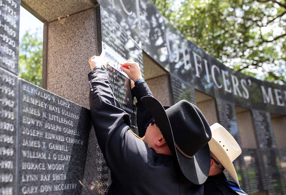 Since it was established in 1999 on the grounds of the state capitol, the Texas Peace Officers’ Memorial has been engraved with the names of more than 2,000 individuals. Visitors are invited to trace the names of their heroes and loved ones along with the date of their “end of watch.”