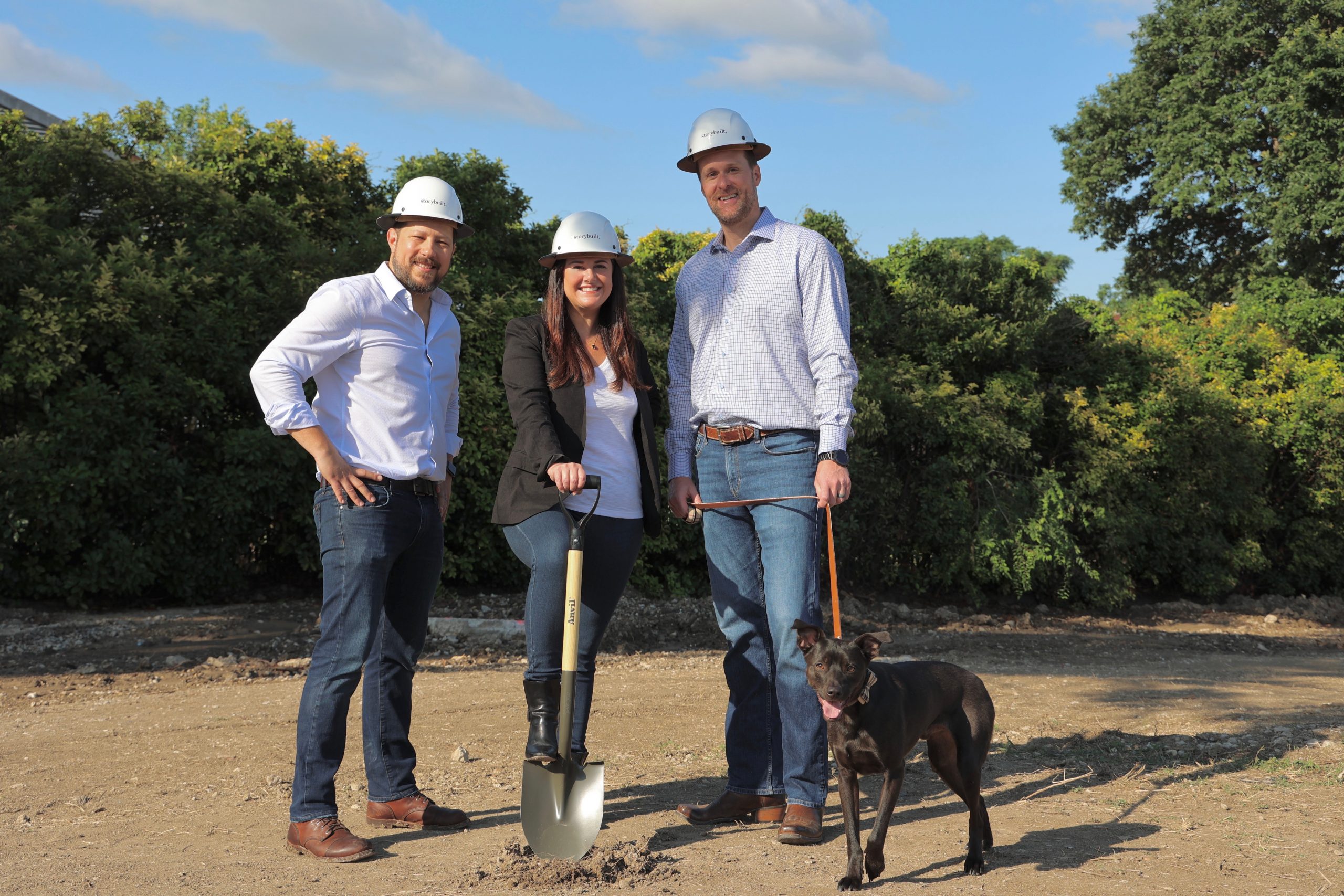 StoryBuilt executives expressed enthusiasm for the project during a groundbreaking in July of 2021. They explained that each of their communities is named for a rescue animal or employee’s pet. Goose, a shiny black labrador mix, was found in an alley near Alamo Drafthouse and was present at the ceremony.
