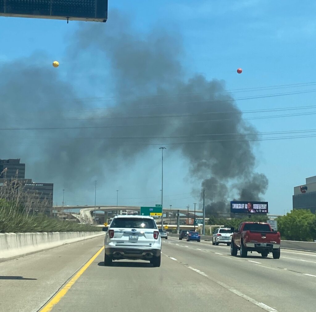 There was heavy fire response from Dallas Fire Rescue around 12:42 p.m. in response to a 911 call about a grass fire. The fire broke out along the 12600 block of the North Central Expressway Service Road.