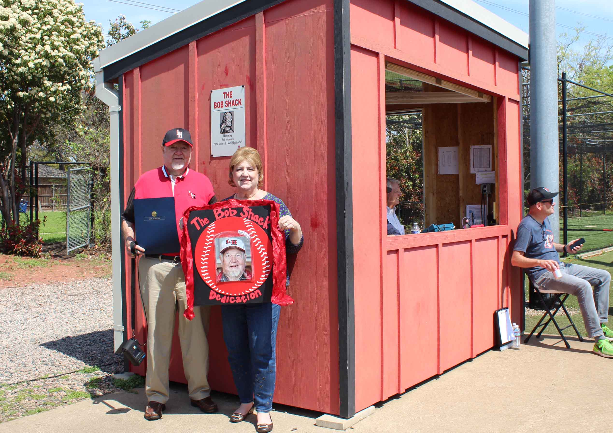 Saturday afternoon, between the JV and varsity games, the Wildcat baseball team dedicated the red press box to Bob, and it will forever forward be known as The Bob Shack. A permanent metal sign was installed with his picture and name.