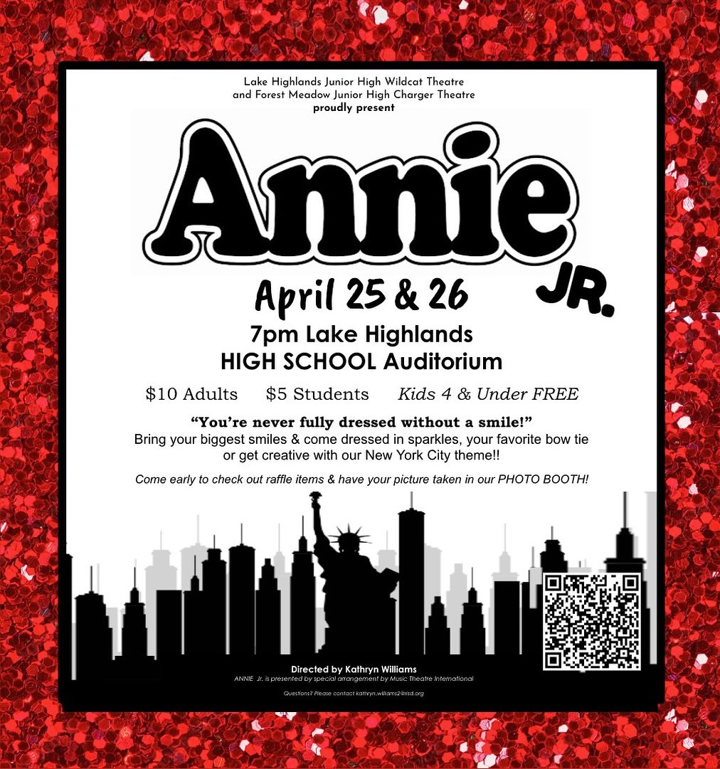 Talented students from Lake Highlands Junior High and Forest Meadow will team up Thursday and Friday nights to present Annie Jr., based on the popular comic strip and adapted from the Tony Award-winning Broadway megahit.