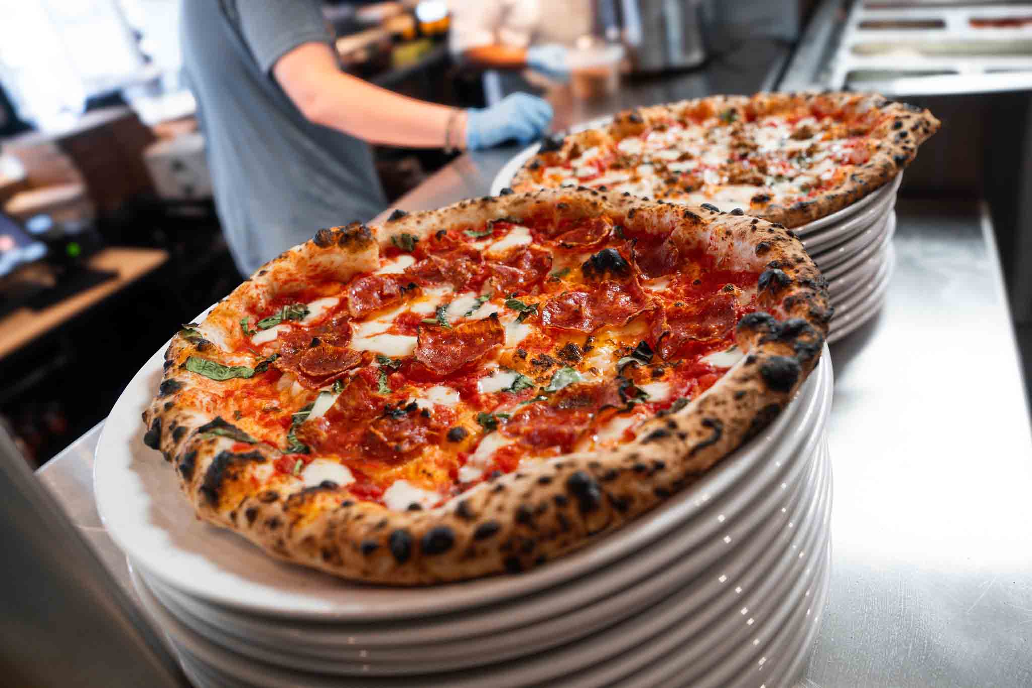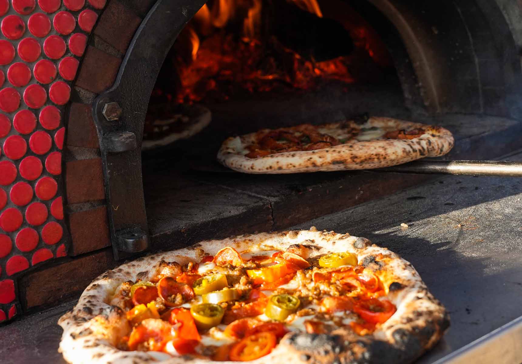 Cane Rosso pizzas cook at 900 degrees for 90 seconds in wood-burning ovens.