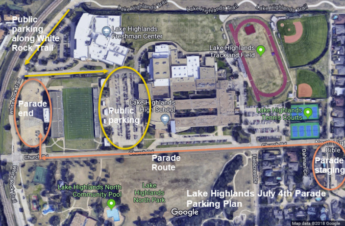 The parade runs east-to-west along Church Road. Afterward, the Exchange Club will host a carnival and food trucks at Lake Highlands North Park.