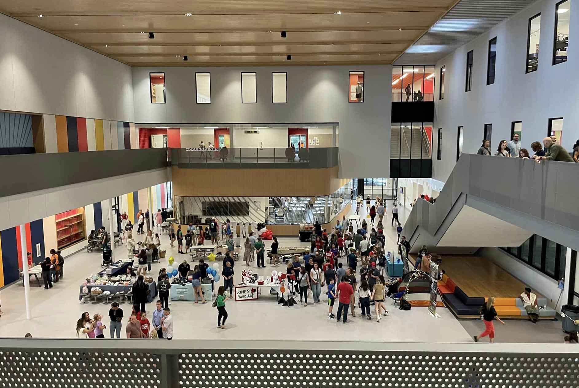 Richardson ISD Superintendent Tabitha Branum joined school board members to cut a red ribbon and welcome parents, siblings and community members for the first official tour, even as landscaping crews planted a final row of bushes along the north side of the campus.