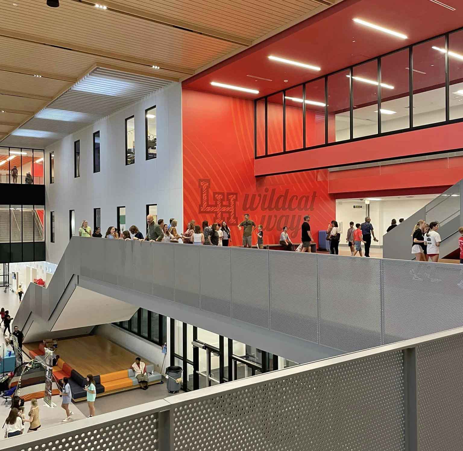 LHMS was constructed on the center third of the Lake Highlands Junior High footprint while classes were still in session. Once debris is removed from demolition of the old building, more parking and greenspace will be added on the west end of campus.
