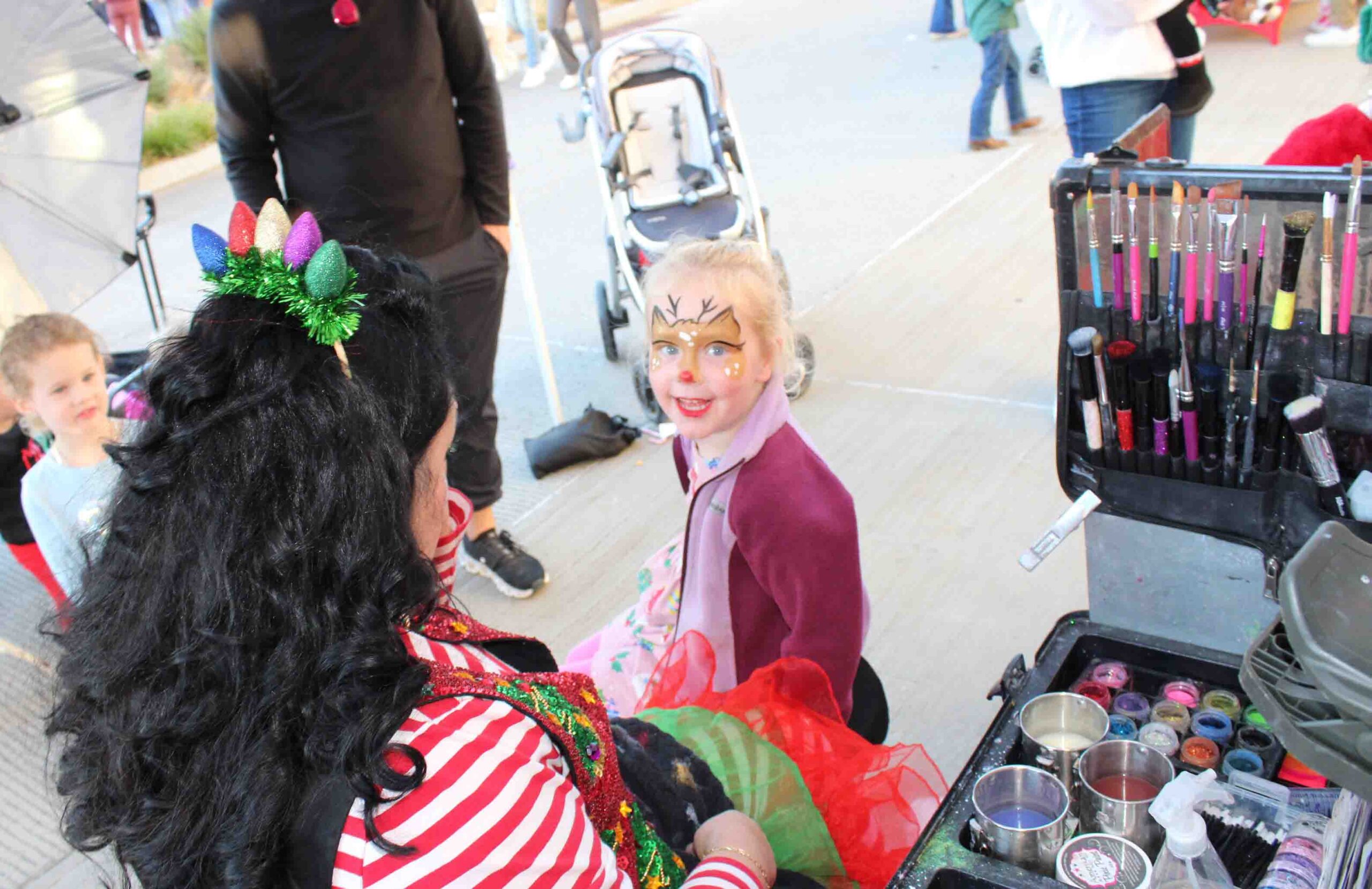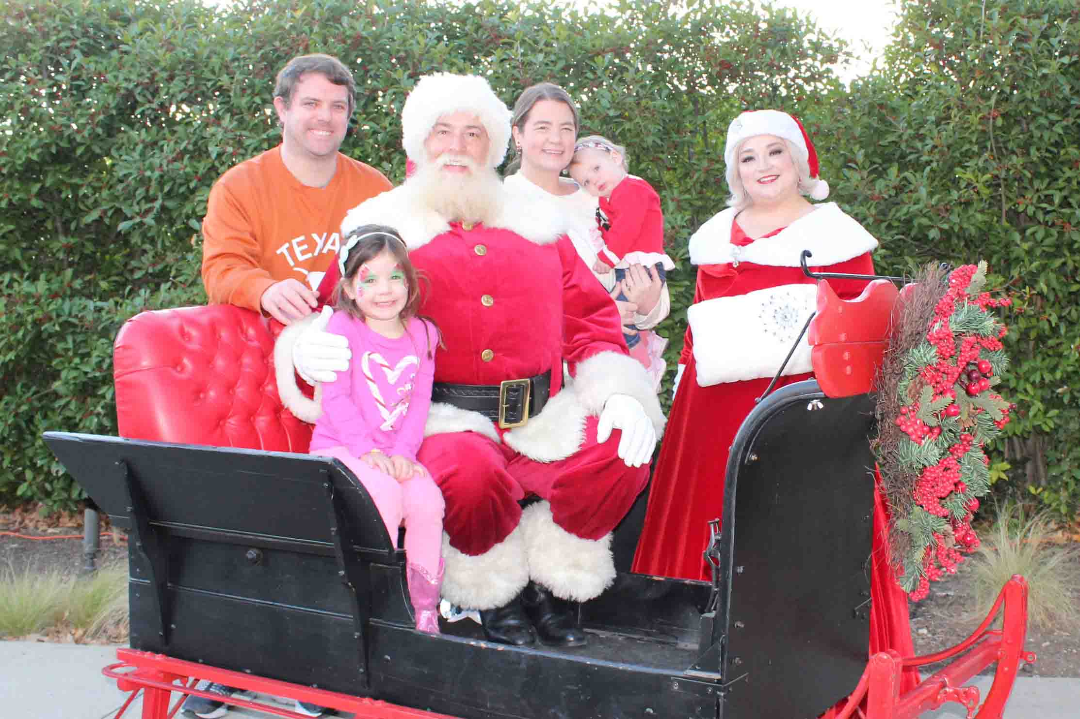 Hundreds of families showed up for Light Up the Highlands in the Lake Highlands Town Center Sunday afternoon to take photos with Santa, sip hot chocolate, make Christmas crafts and toboggan down a snowy hill. Dedicated Lake Highlands Junior Women’s League volunteers are celebrating the tenth anniversary of this community holiday event, and most attendees smiled and nodded graciously when I asked to take their photo, understanding they might see their families’ faces online or in our monthly paper mag. A couple of shrewd negotiators, though, had a few conditions.