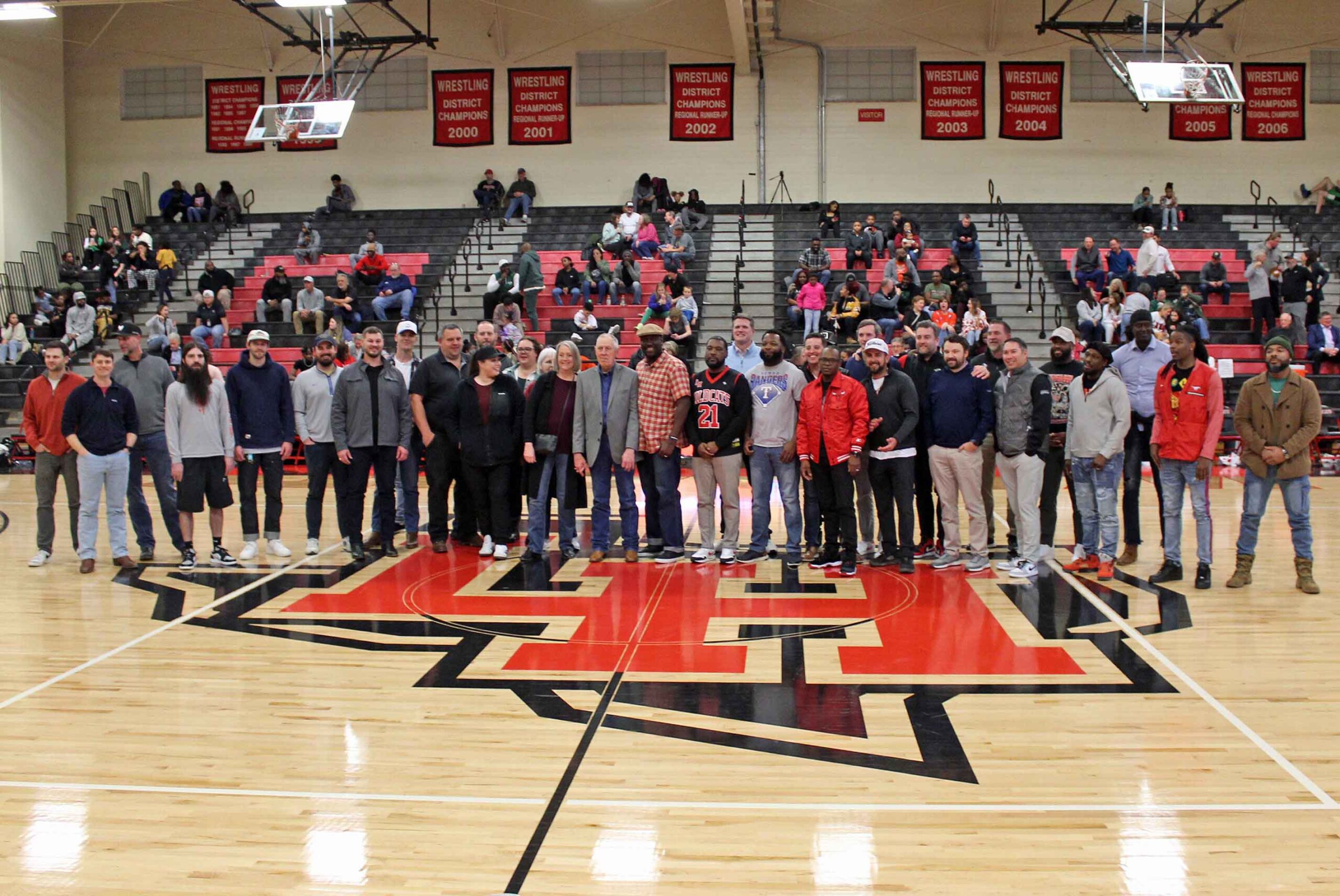 Brian Witt, a 2004 graduate, gathered with a group of former players for dinner before the game to reminisce about the days of playing with Coach Wylie. He was happy to enter the gym and find a big, roaring crowd.